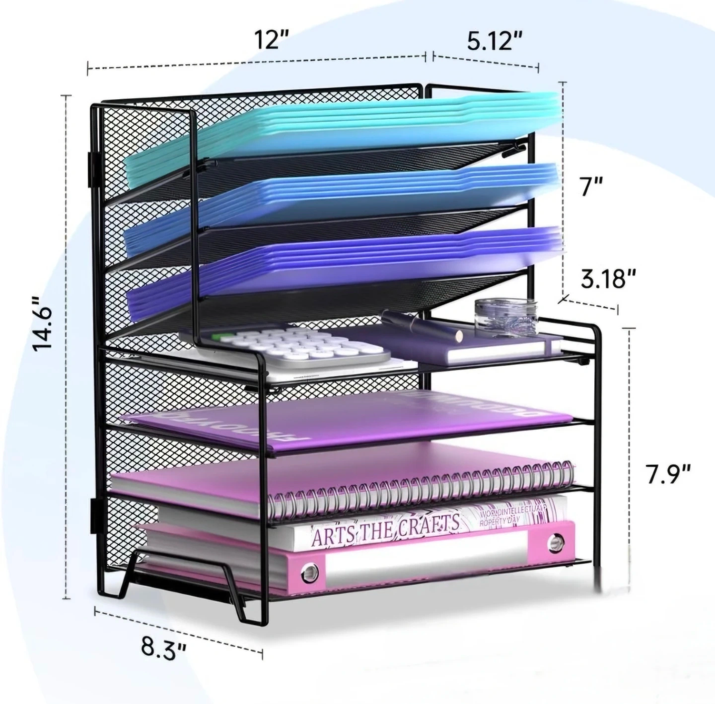 Black Mesh Metal Desk Organizer 7 tiers