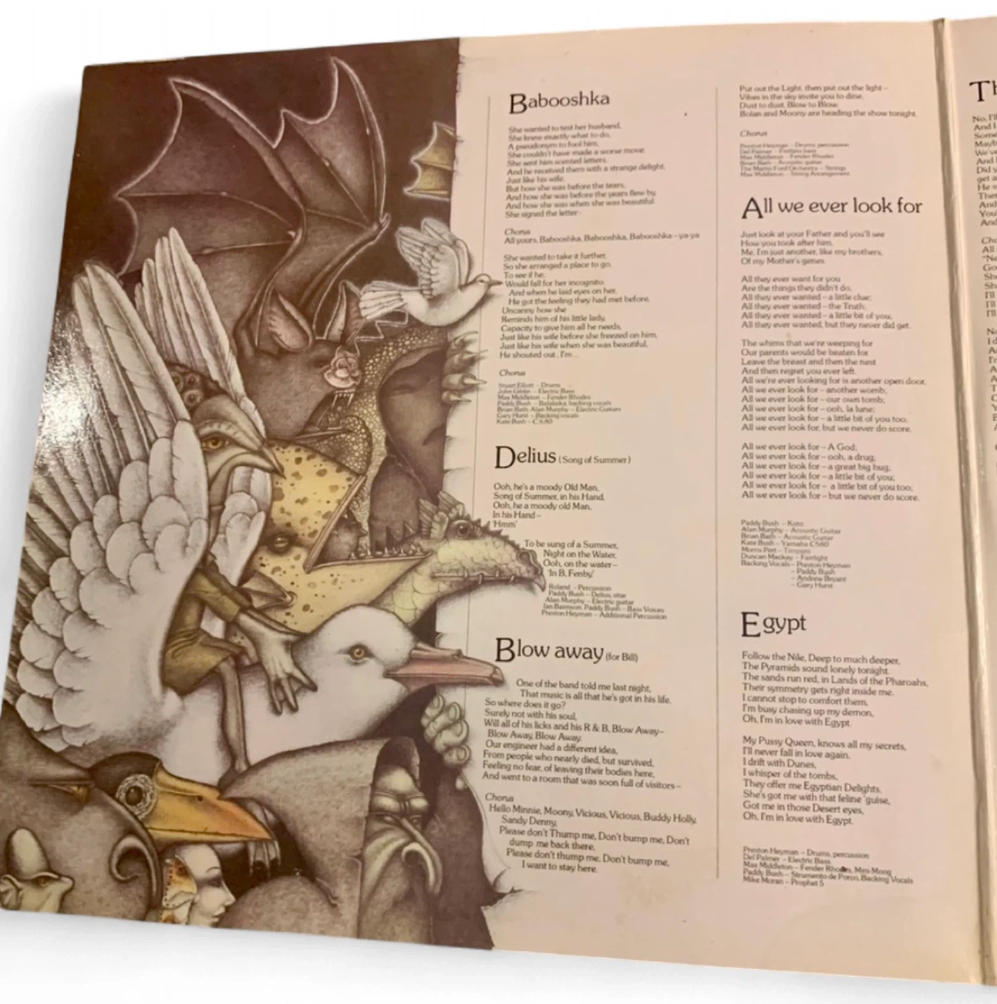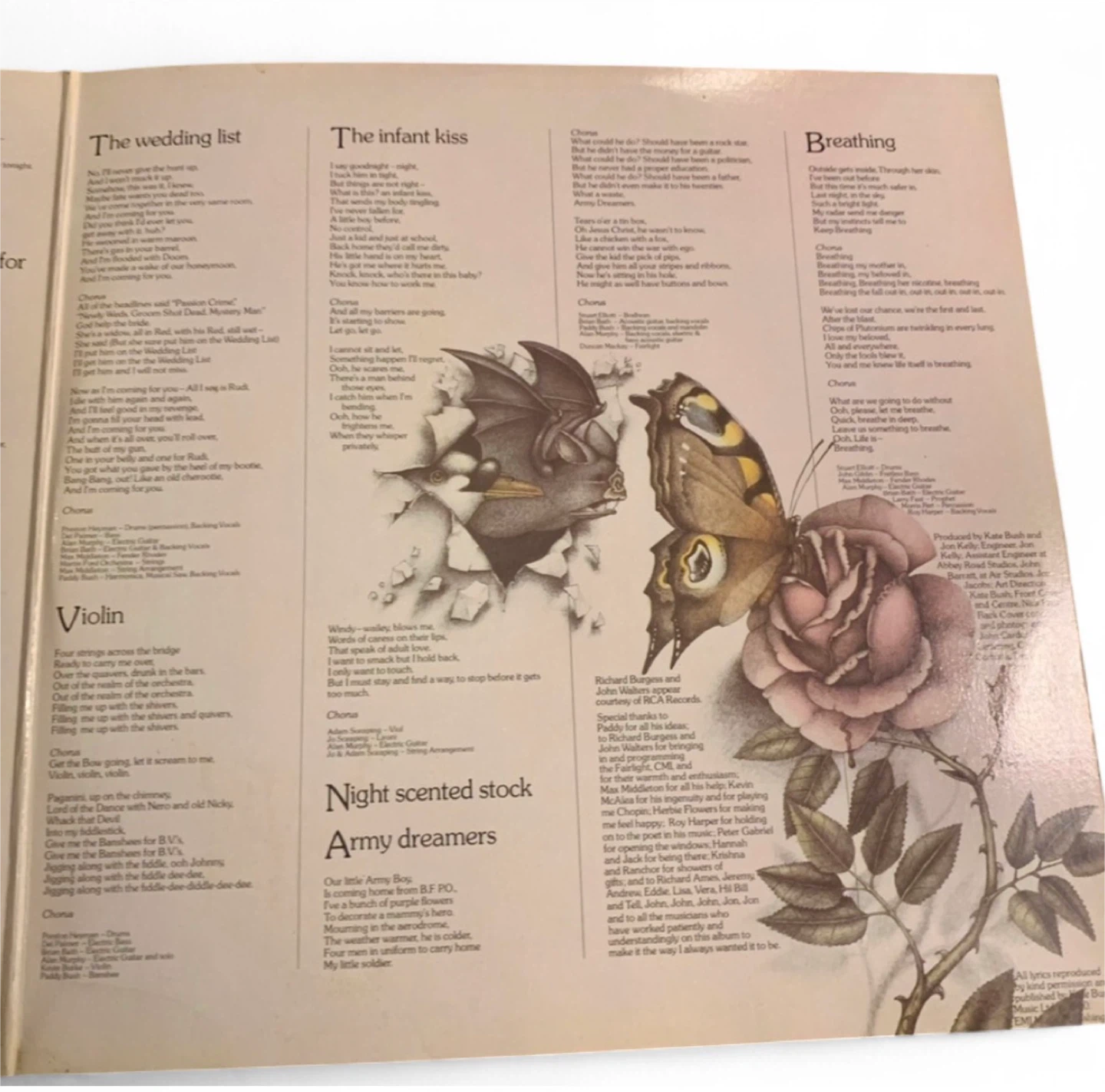 Original 1980 LP. Excellent condition with stunning artwork all throughout. Everything looks fresh. Kate Bush has recently become even more widely known from her song that plays throughout the hit series Stranger Things. Rare find.