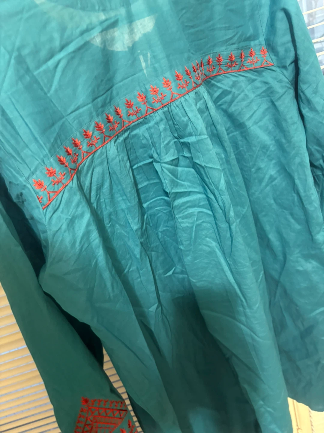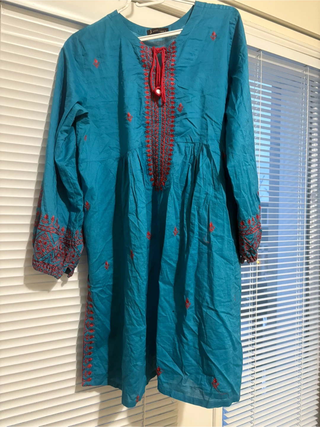 Selling a beautiful J. Pret kurti in a lovely shade of blue with intricate red embroidery. It's a size 14 and in great condition. Perfect for adding a touch of elegance to your wardrobe!