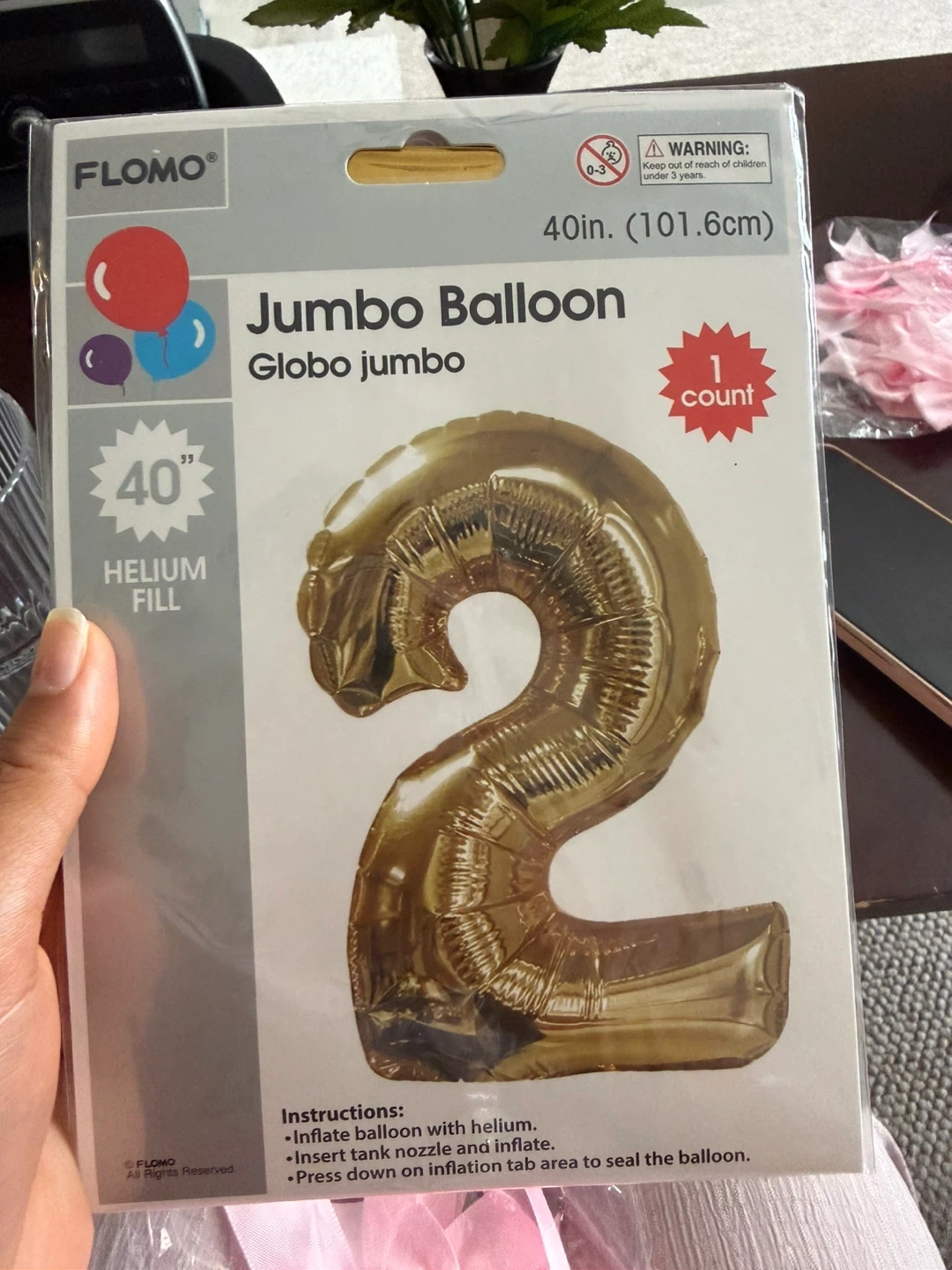 Selling a brand new, still-in-packaging FLOMO Jumbo Balloon! It's a gold-coloured number 2 and measures 40 inches (101.6 cm). Perfect for a birthday party or special celebration!
