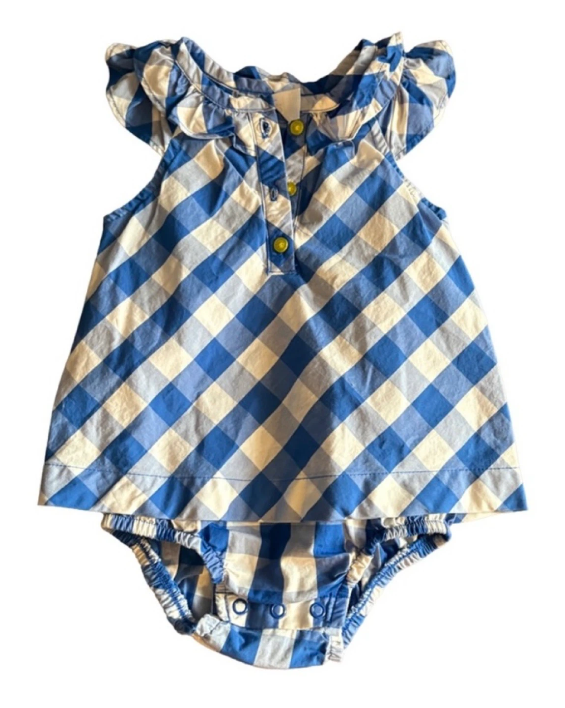 Ready for picnics, playdates, and picture-perfect moments. This Carter’s romper in classic blue-and-white check is a summer staple with a twist—ruffled sleeves, cheerful yellow buttons, and soft cotton comfort. Snap closures make diaper changes a breeze, and the lightweight fabric keeps your little one cool and cozy.