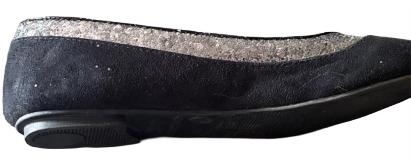 Step out in effortless style with these classic black ballet flats, accented by a shimmering silver trim for a touch of glam. Perfect for everyday wear, office outfits, or dressing up casual looks. 📸 Gently worn and in great condition