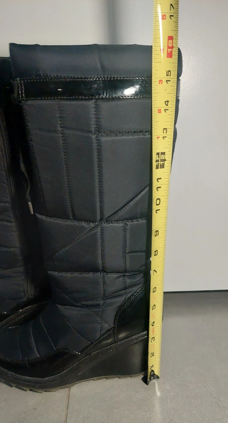 - US size 9, the top high part can fit up to a 16" width calf size.