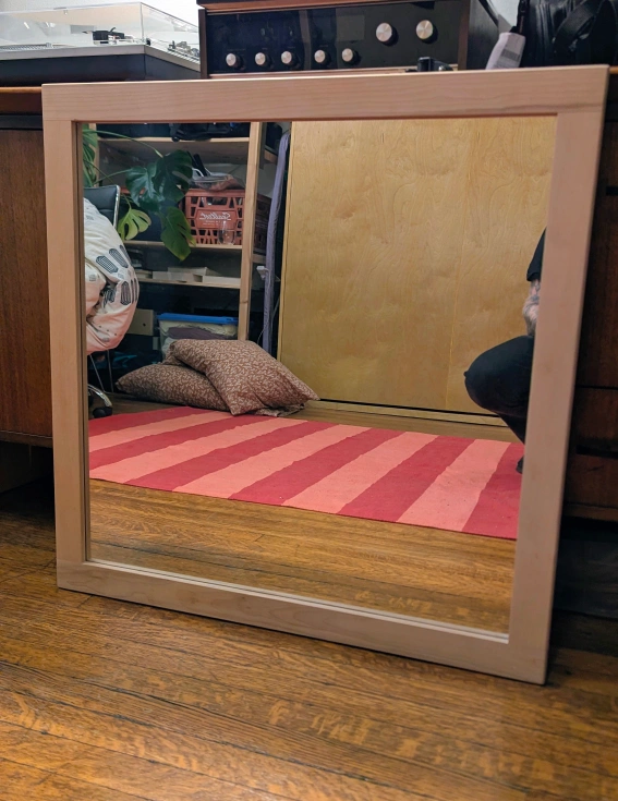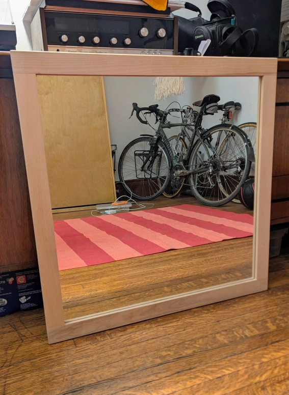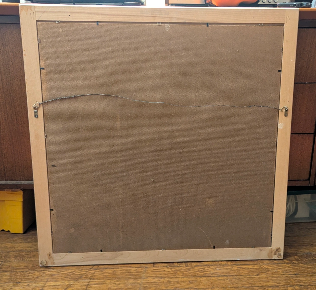 On the heavier side, real wood. Includes heavy duty hanger on back.