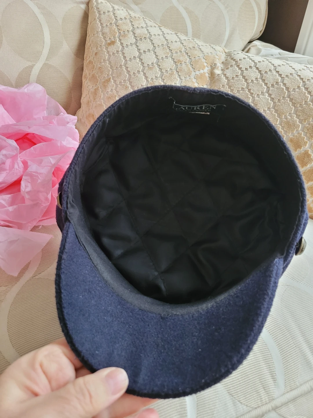 Selling a stylish Ralph Lauren newsboy hat in navy blue. It's a wool blend and in great condition! Perfect for adding a touch of sophistication to any outfit. Brim 6cm
