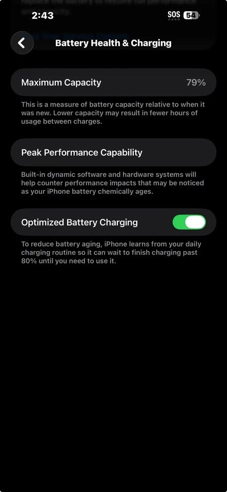 • Can show battery health (79%) and settings during pickup