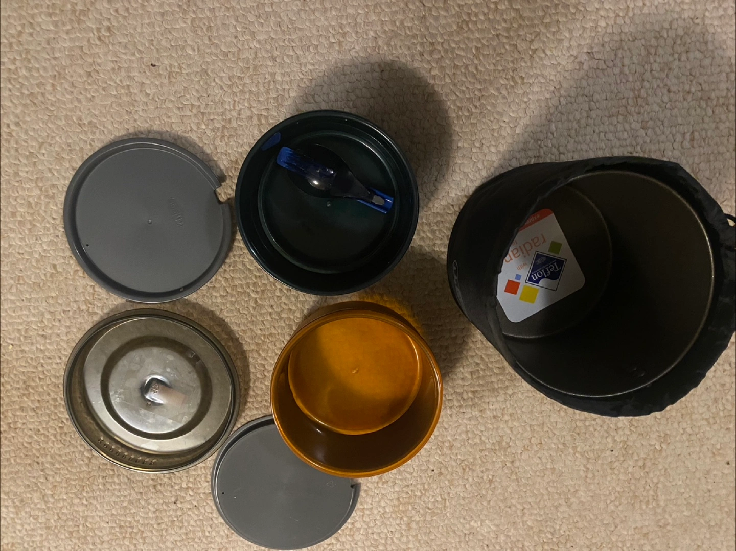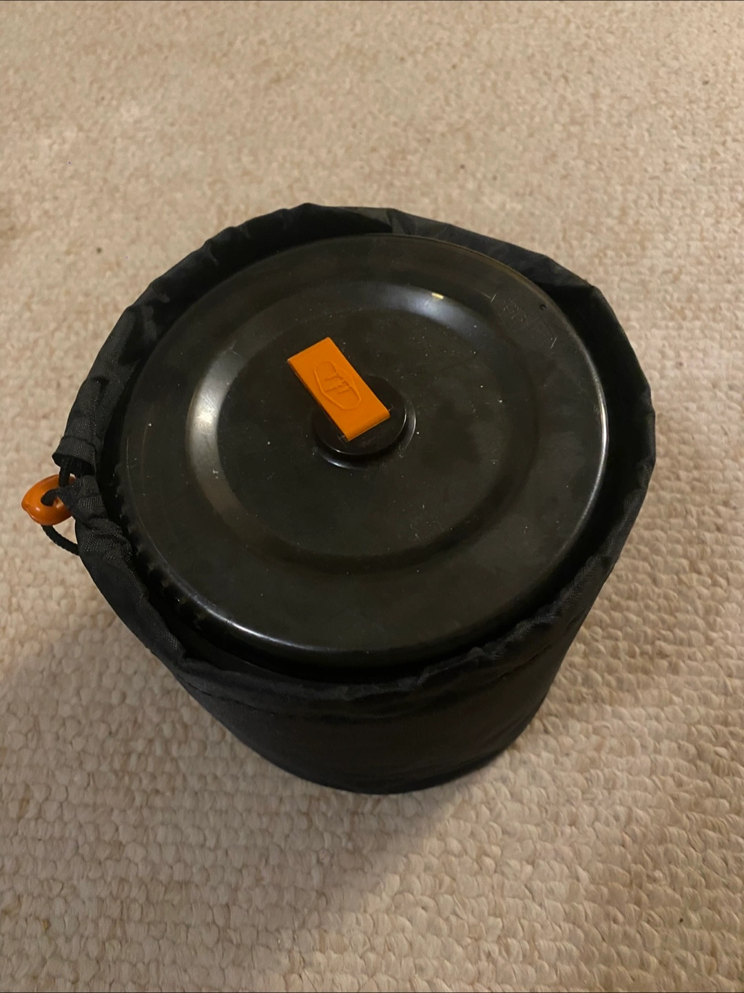 Selling a GSI Outdoors Halulite Microdualist cook set! This set is perfect for camping or backpacking. It includes a pot, lid, mugs, and utensils, all neatly packed in a compact carrying bag. Great for two people on the go!