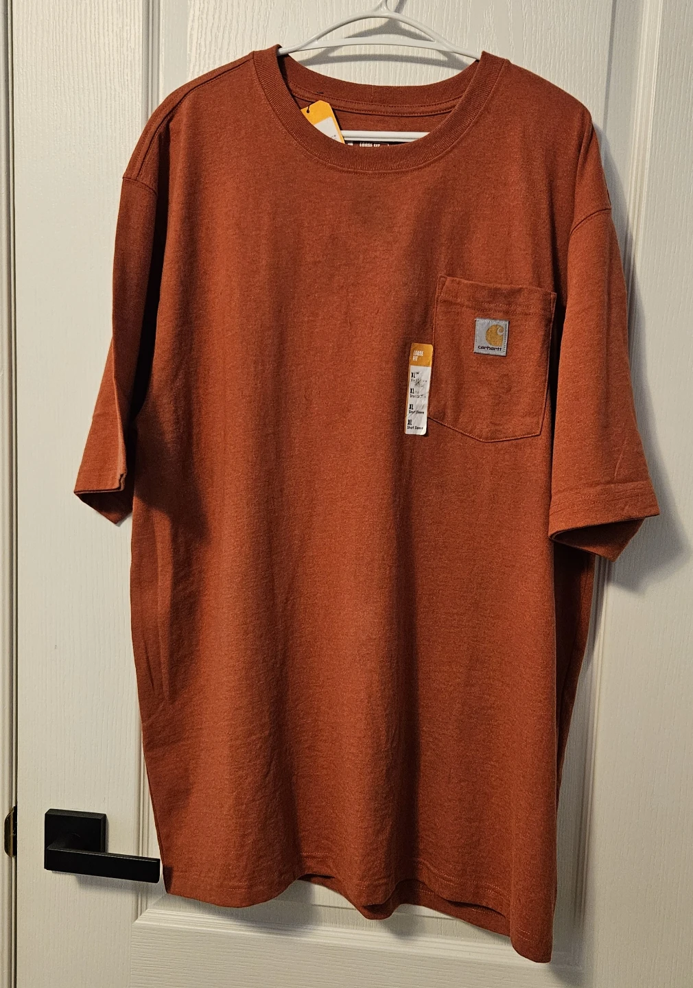 Selling a brand new Carhartt pocket t-shirt, still with tags! It's a size XL and features the classic Carhartt logo on the pocket. Great quality and durable material, perfect for everyday wear. Loose Fit and Heavyweight.