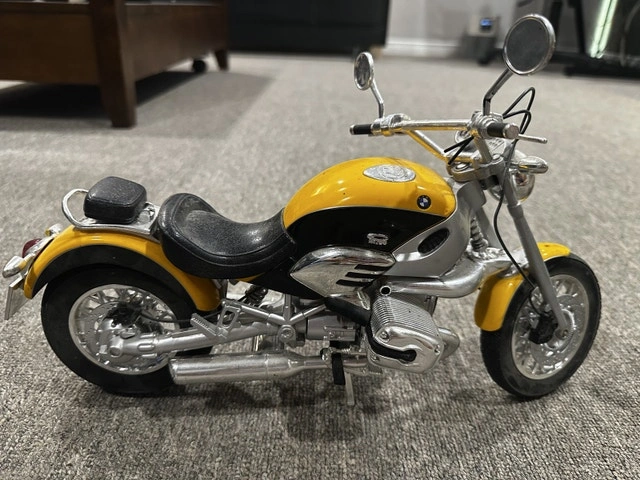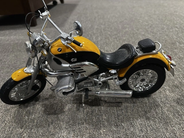 This is a used BMW motorcycle model, a cool display piece for any motorcycle enthusiast's collection. I'm estimating its value based on similar collectibles I've spotted online. This beauty is looking for a new home where it can be admired. If you're reading this, yes, it's still available!