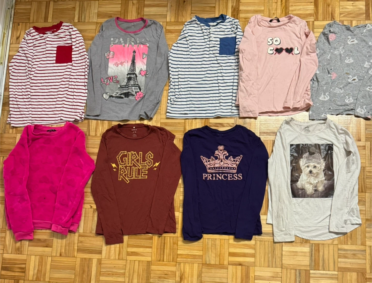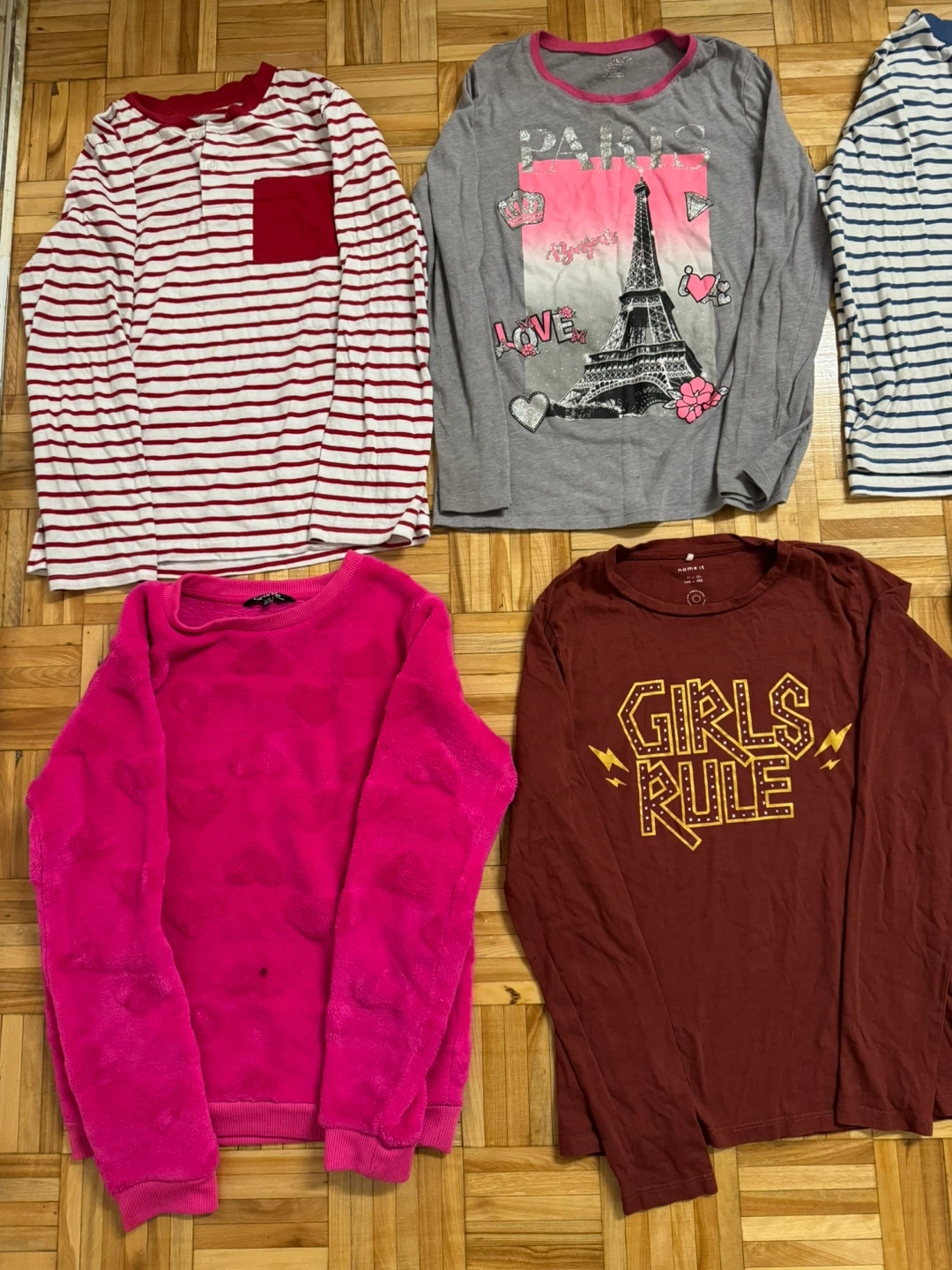 Selling a bundle of girls' long sleeve shirts! There are various brands and designs included, perfect for everyday wear. All in good condition and ready for a new wardrobe