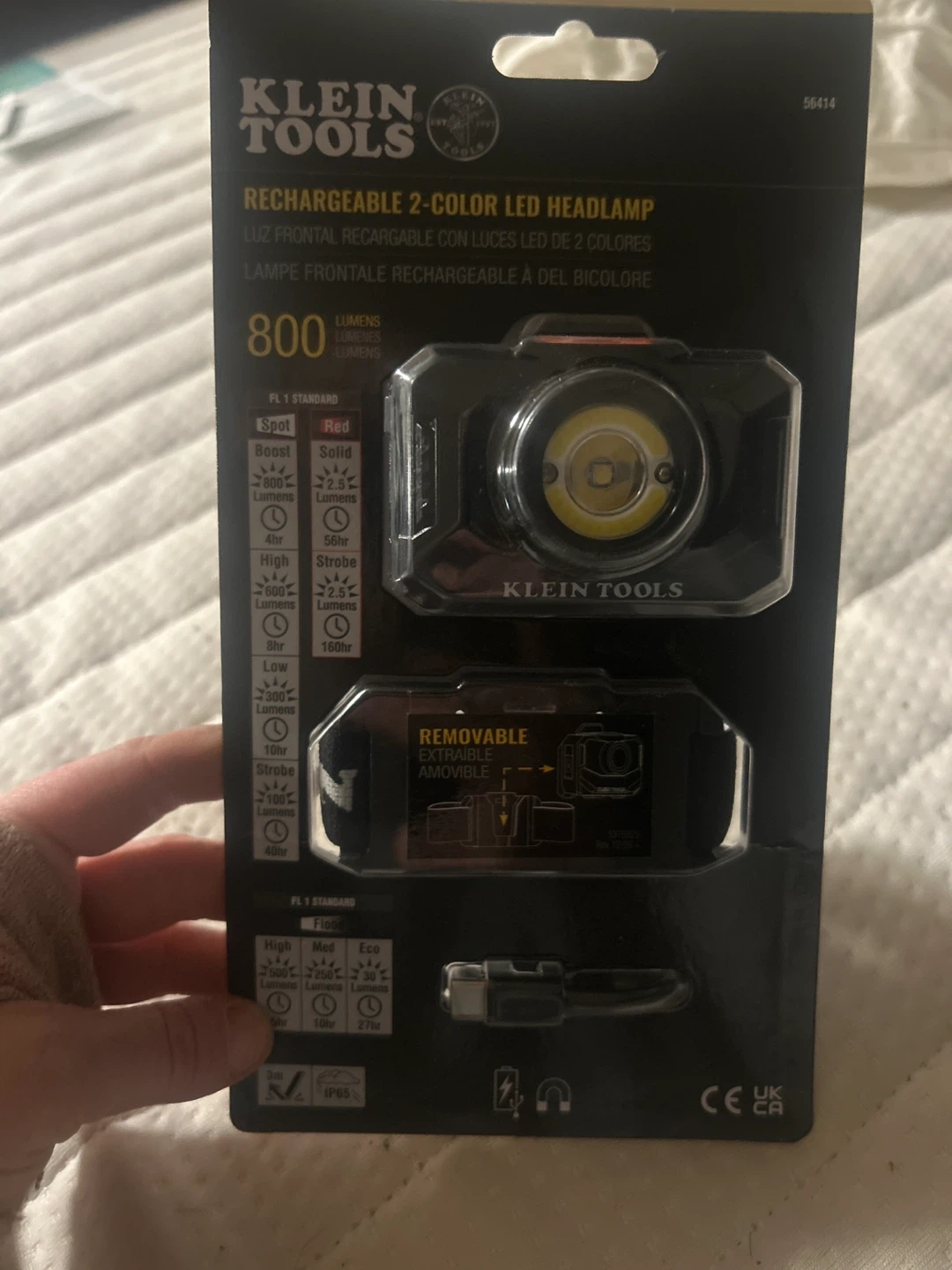My son got this in his stockings I'm selling a brand new Klein Tools rechargeable 2-color LED headlamp! It features: