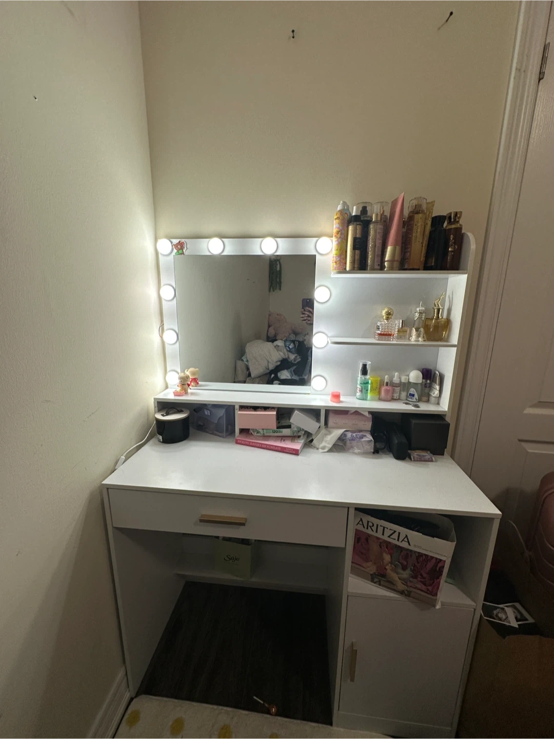 Selling a beautiful white vanity with LED light mirror, purchased only 3 months ago and in excellent condition.