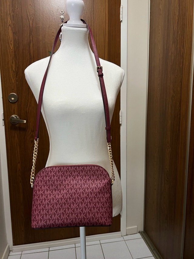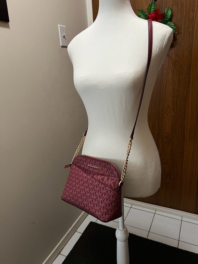 I'm selling a stylish, used Michael Kors handbag, featuring a distinctive monogram pattern and a chic crossbody design. The purse is in used - good condition. Features include: