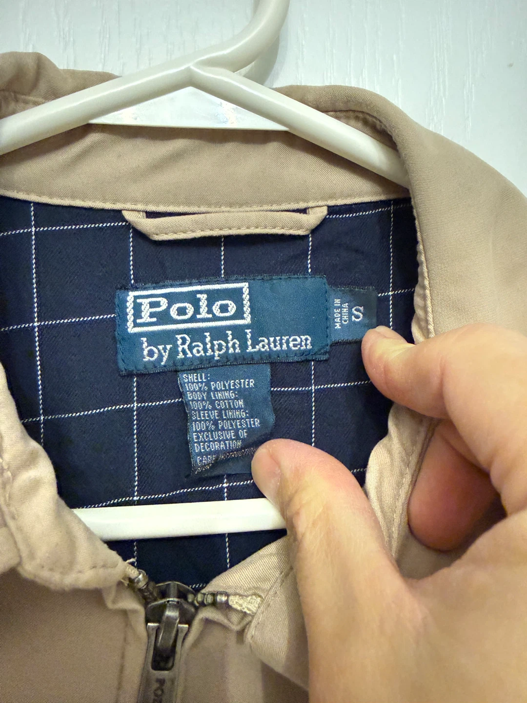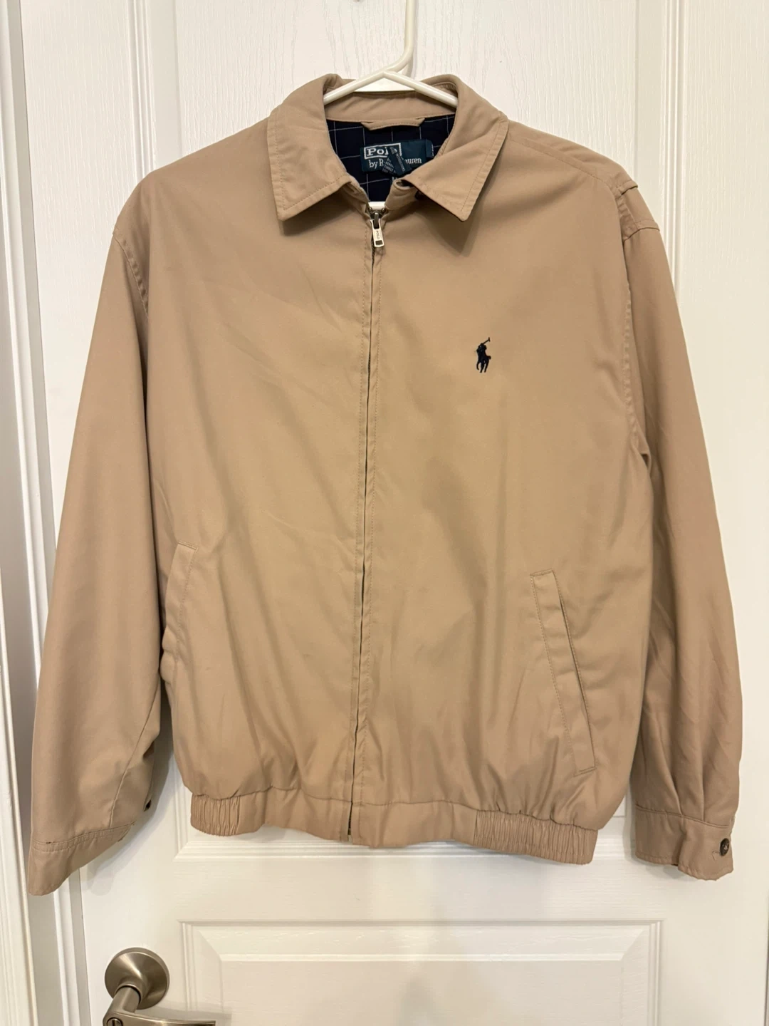 Selling a classic Polo Ralph Lauren Harrington jacket in a lovely neutral colour. It's a size small and made with a shell of 100% polyester and body lining of 100% cotton. The sleeve lining is 100% polyester, making it a comfortable and stylish choice for any casual occasion
