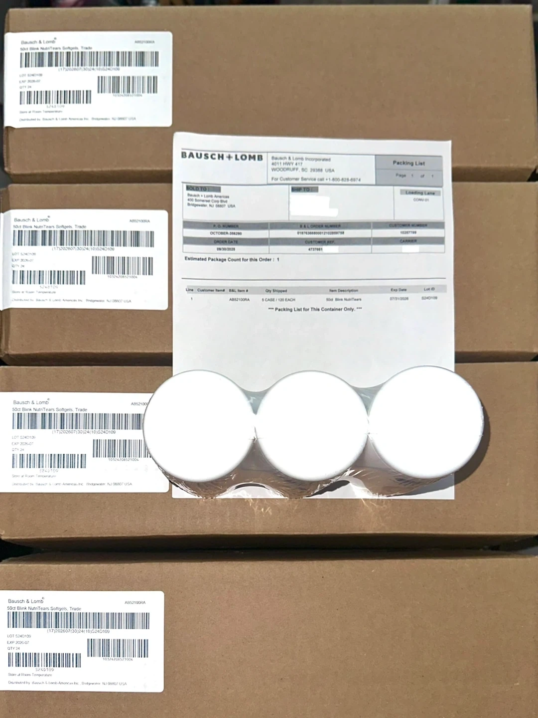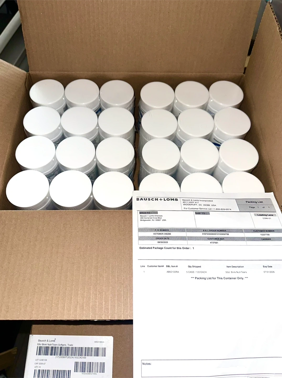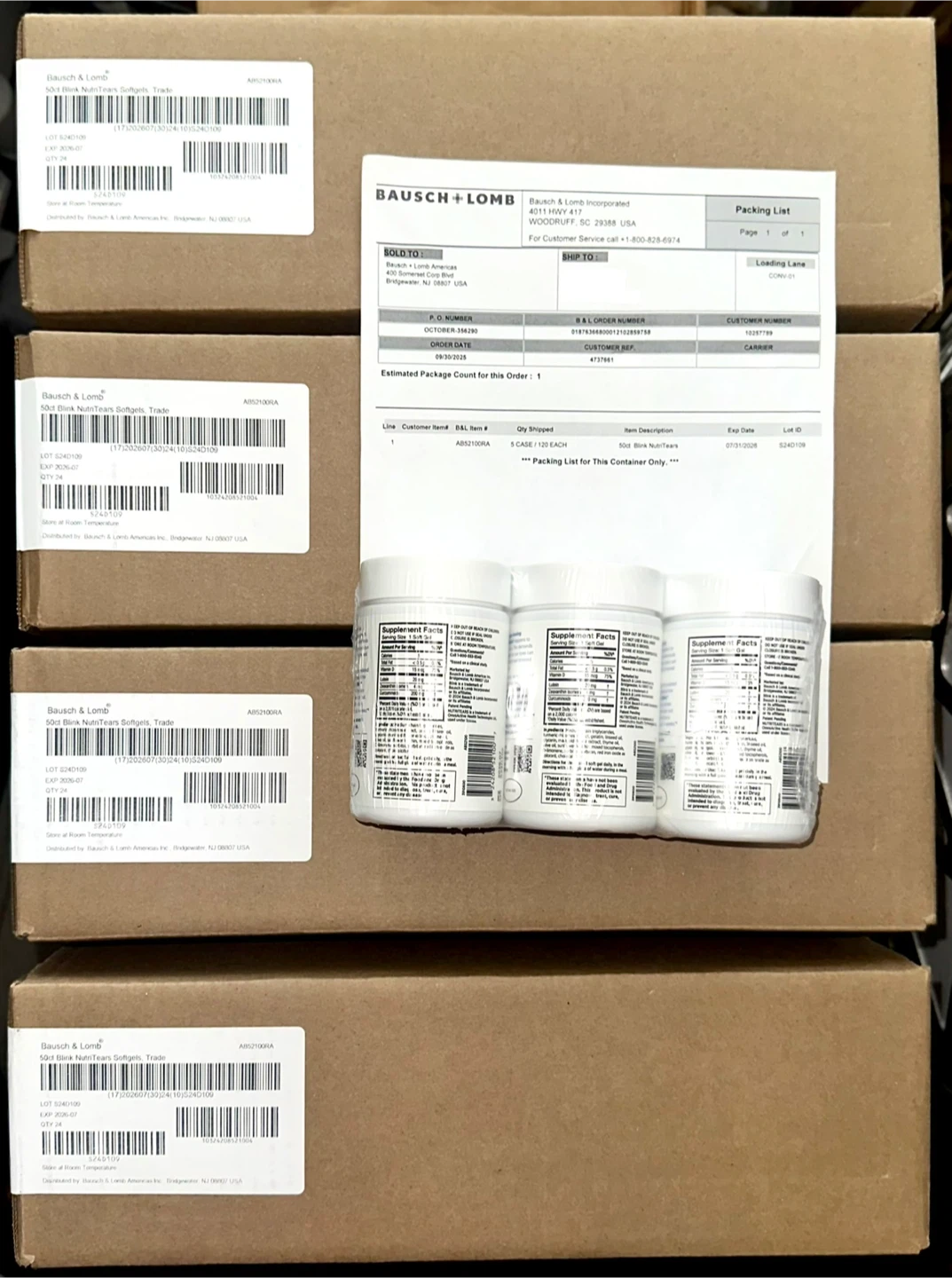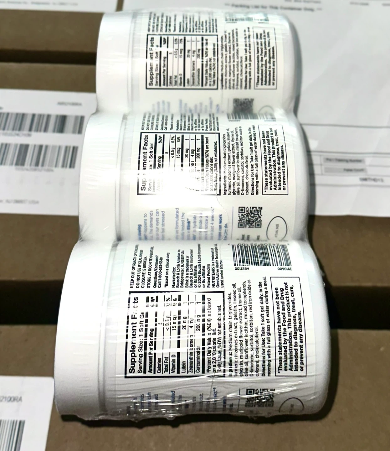 Selling a pack of Bausch + Lomb Blink NutriTears clinically proven supplement for dry eyes. Each bottle contains 50 soft gels that promote long-lasting hydration. The expiration date is in 2026 July 07.