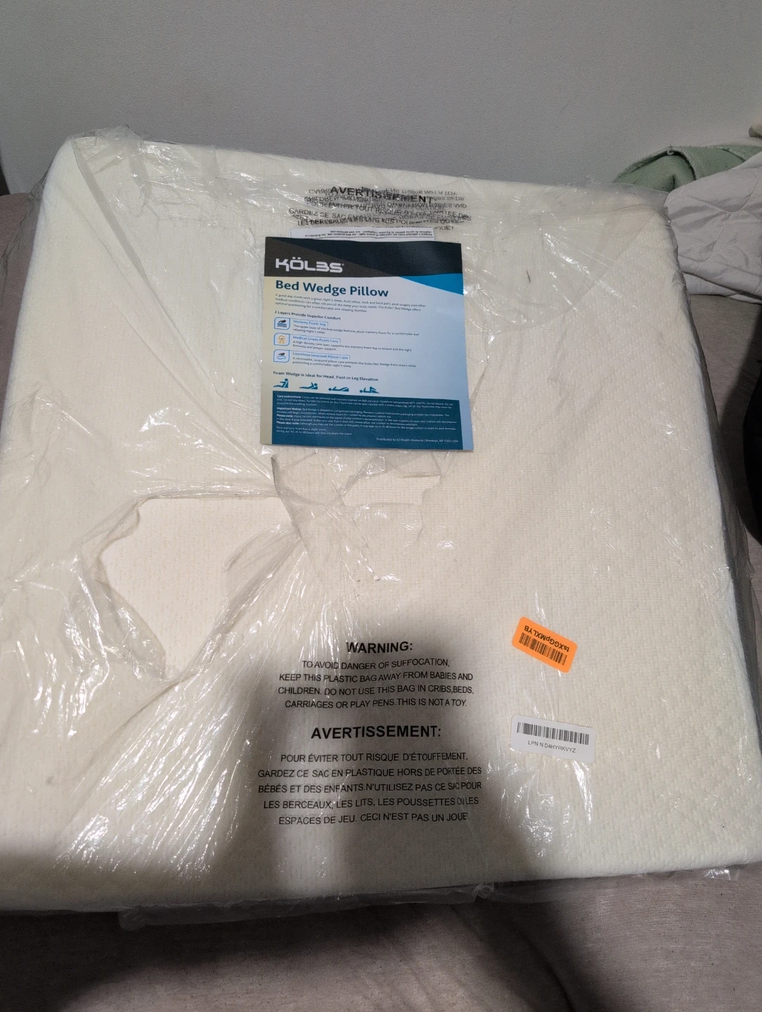 Perfect for injured or pregnant people! Selling a brand new Kölbs Bed Wedge Pillow still in its original packaging! It's designed to provide comfortable support while you rest or sleep. Perfect for anyone needing a little extra elevation. It is designed to help with: