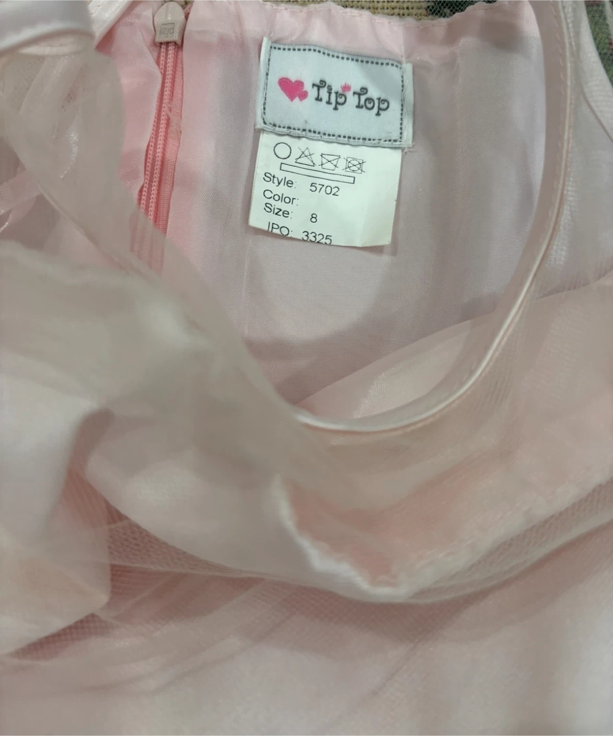 This is a Tip Top brand girls dress. It is a size 8 and the color is pink. The style number is 5702.