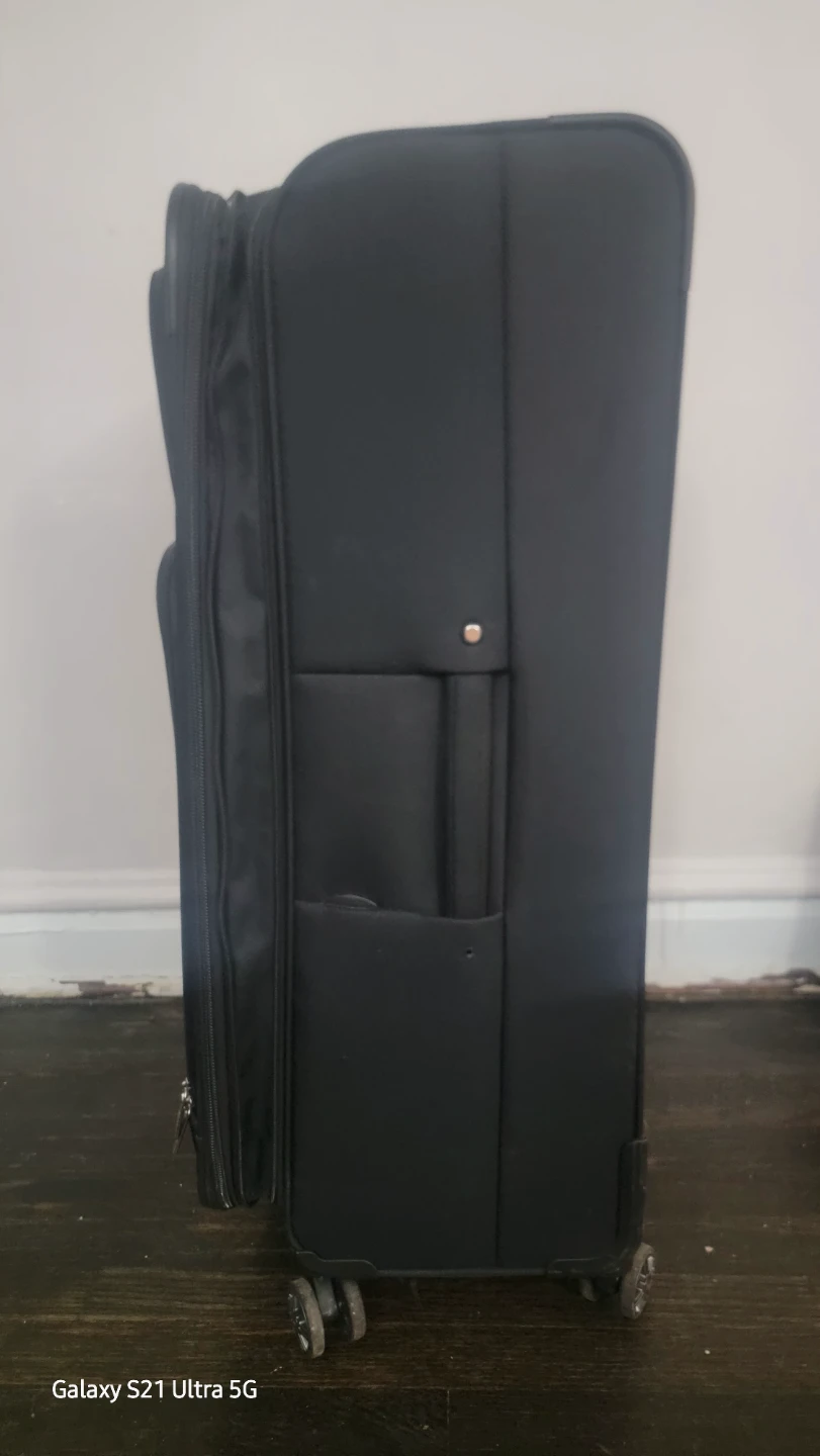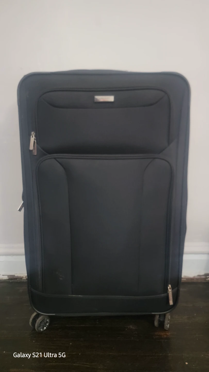 Selling a black rolling suitcase. It has a few compartments and is in good condition. Perfect for traveling!
