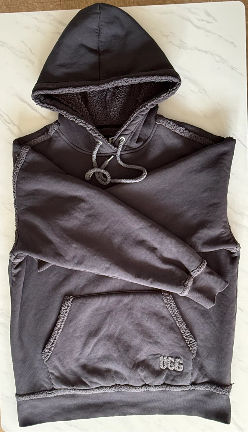 Selling a cozy UGG hoodie in a stylish gray color! It's a size small and features a comfortable, lined hood. Perfect for staying warm and looking great!