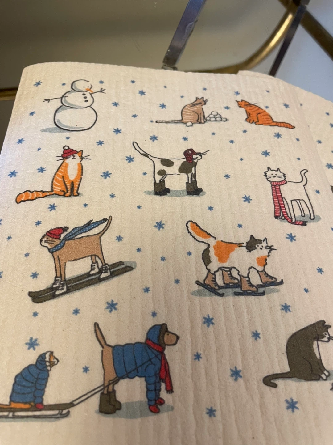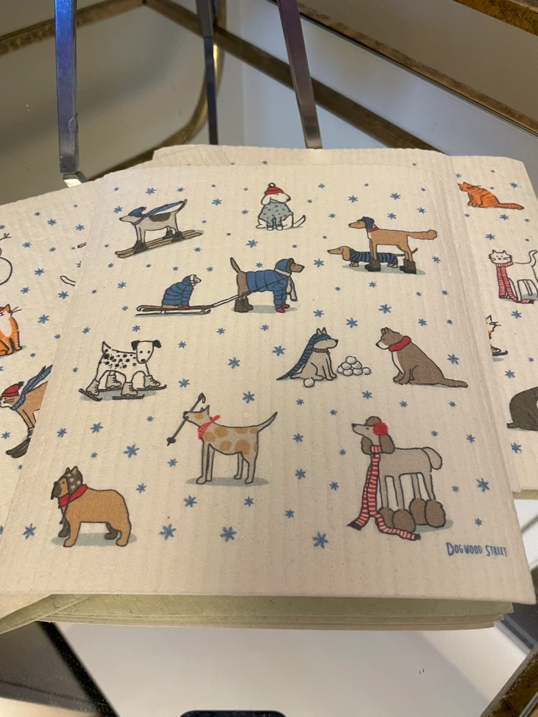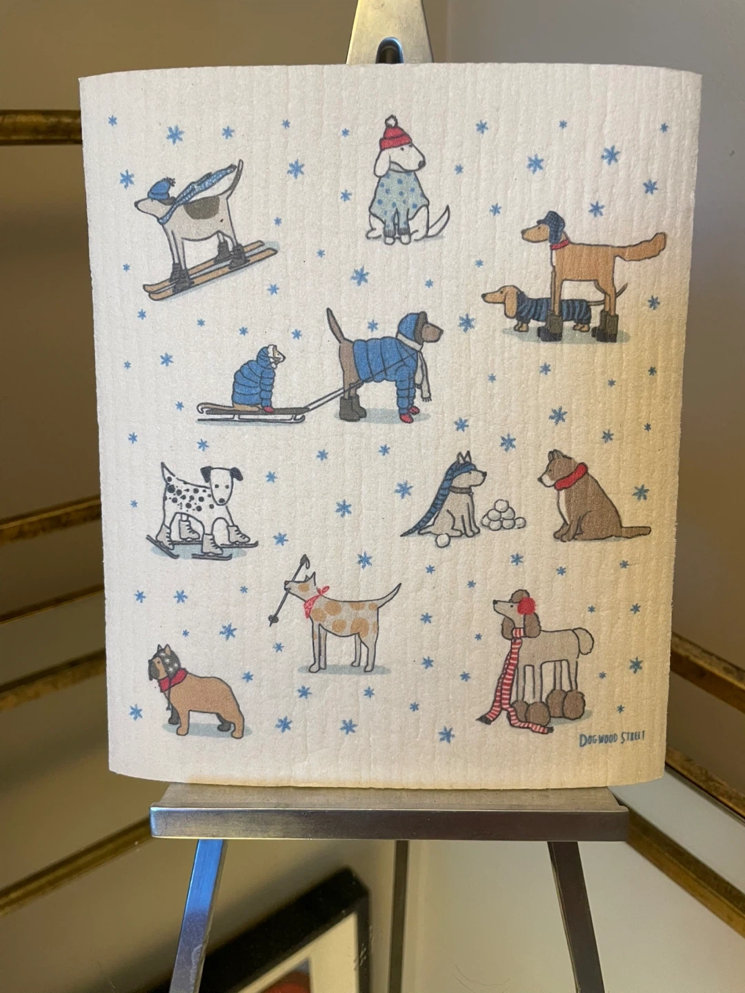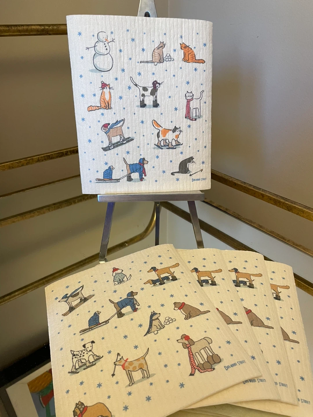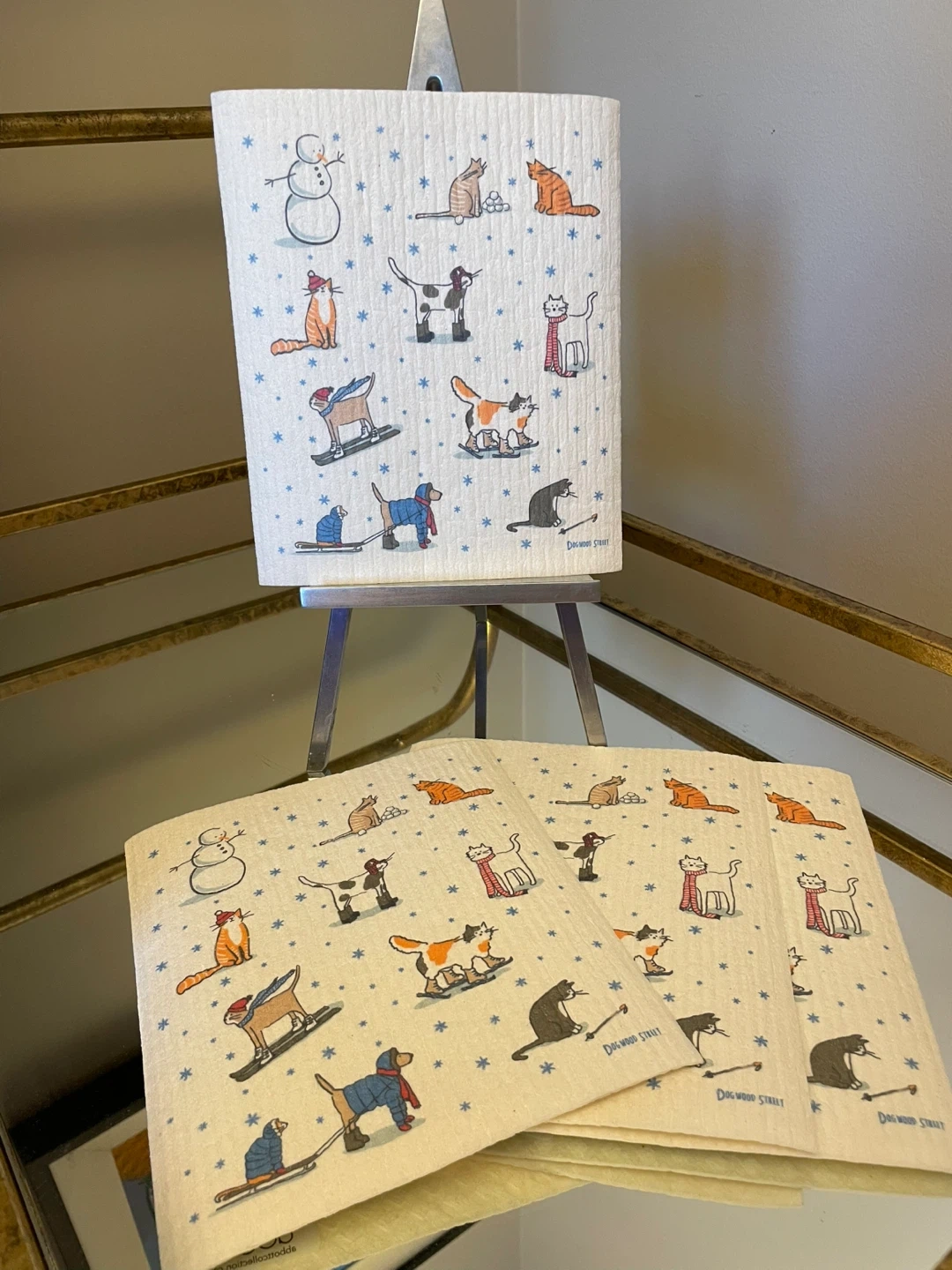 Bring cozy winter vibes to your kitchen with these charming Swedish dishcloth featuring adorable dogs and cats frolicking in the snow! Perfect for the dog lover, this durable, absorbent cloth tackles spills and messes while adding a bit of whimsy to your kitchen.