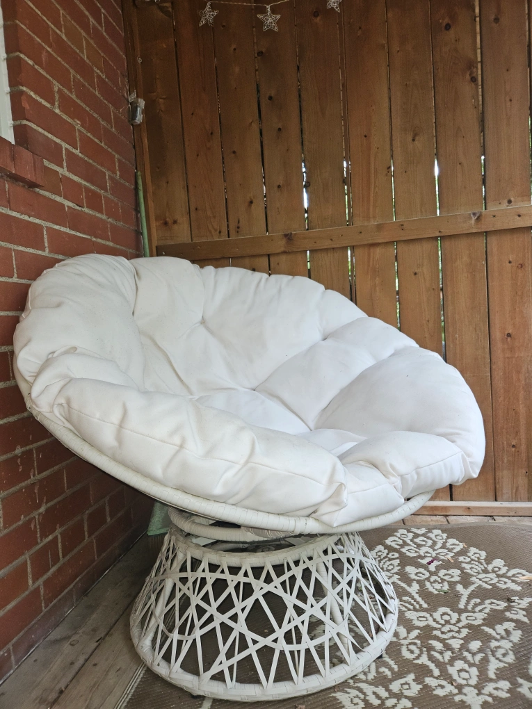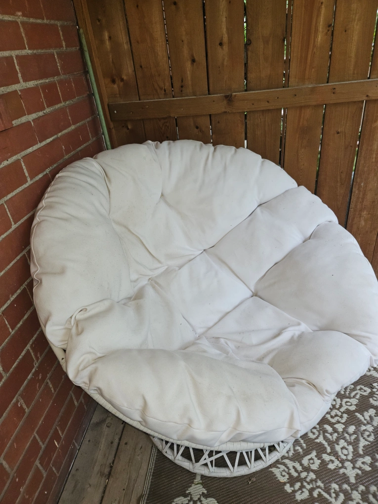 I love this chair,but in hindsight, white was not the best color for a cushion of a deck chair. could be dry cleaned and as good as new or just toss a blanket on top, and it's just as comfy/cozy.