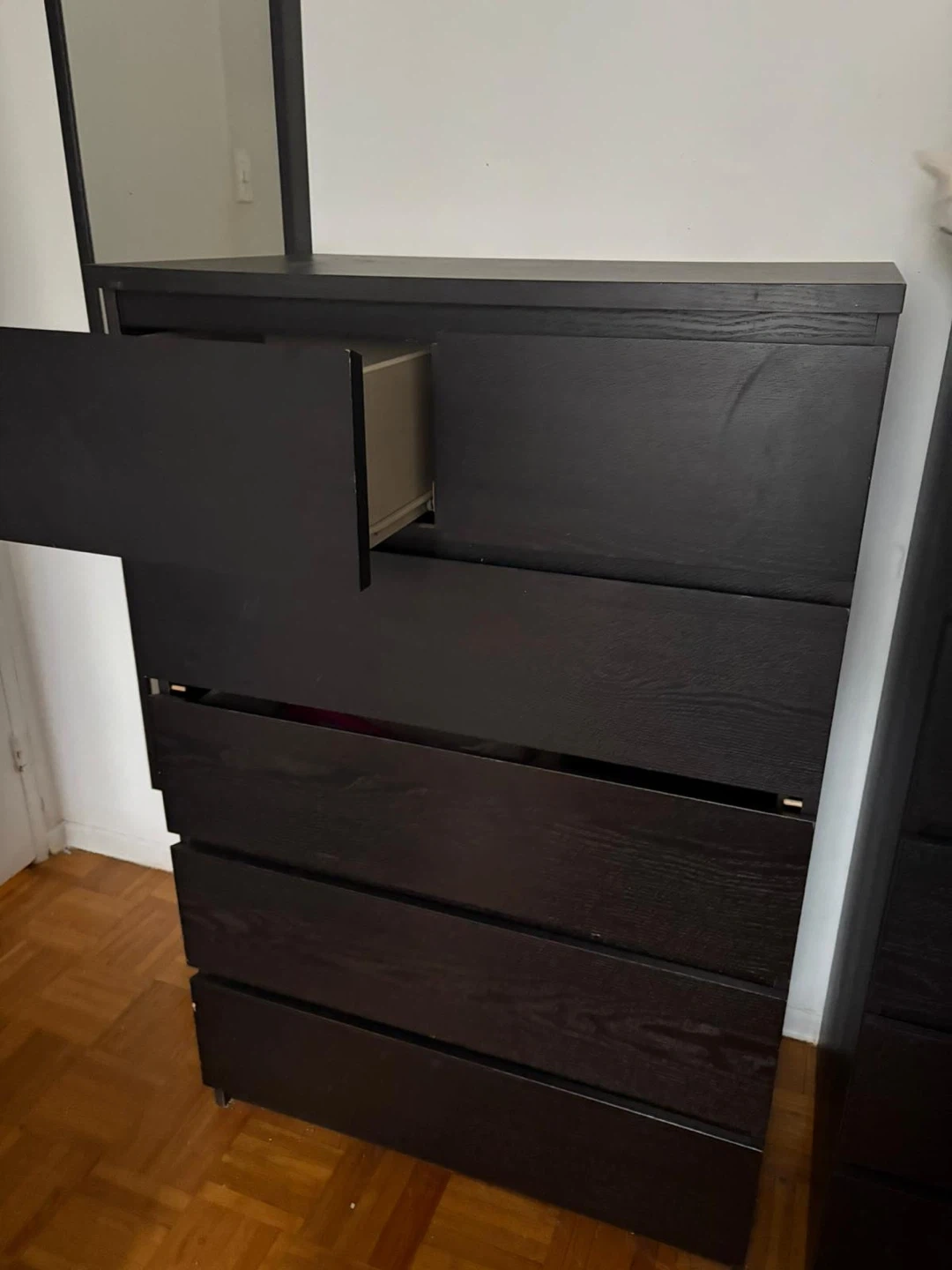 Selling a gently used IKEA Hemnes 6-drawer dresser in black-brown. It's perfect for adding storage to any bedroom or living space. The drawers slide smoothly and provide ample room for clothes and other items. A great piece for organizing your home!