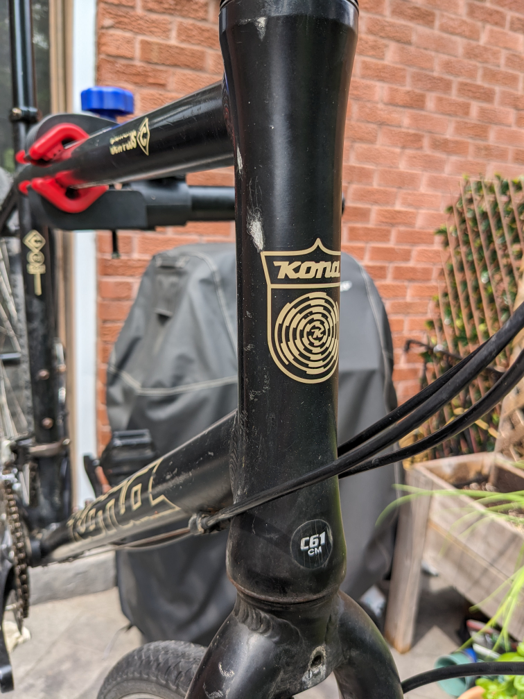 Kona Dew Plus 2015 hybrid. Size is XL, 61cm. I'm about 6'4, should be good for someone over 6'. Aluminum frame, 3x8 speed. Most parts not original. Front brake hydraulic, rear is mechanical. Freshly replaced rear brake cable. It is good to ride, but may need servicing after the season. http://2015.konaworld.com/dew_plus.cfm