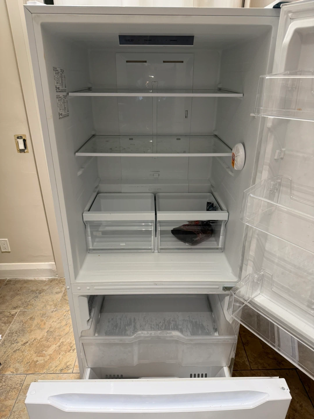 Selling a white Insignia NS-RBM18WHO-C fridge. Very spacious (about 19 cu ft) with bottom freezer drawer, glass shelves, crisper drawer, and frost-free design. (bestbuy.ca)