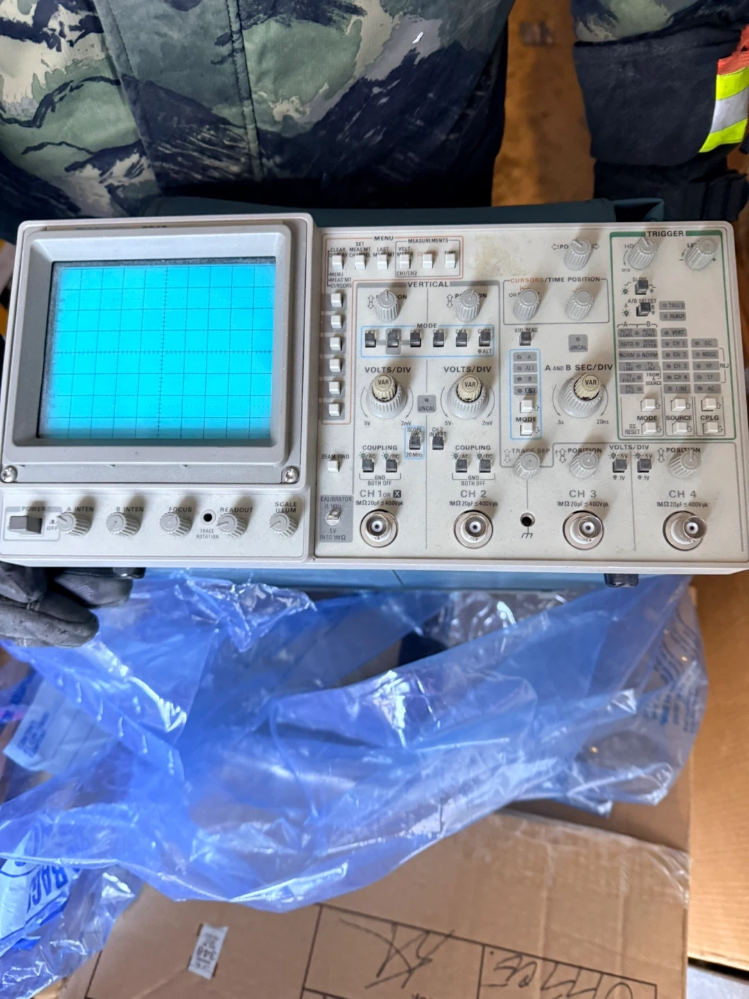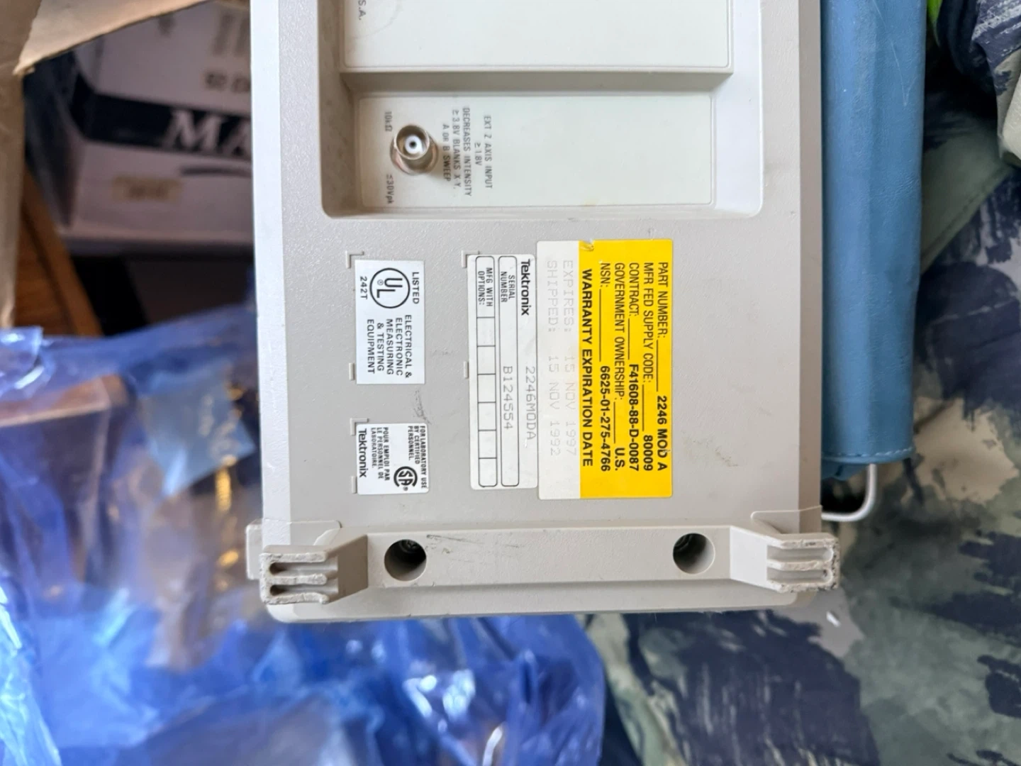 Tektronix 2246 100 MHz oscilloscope. It has 4 channels and includes probes. Manufactured November 1992.