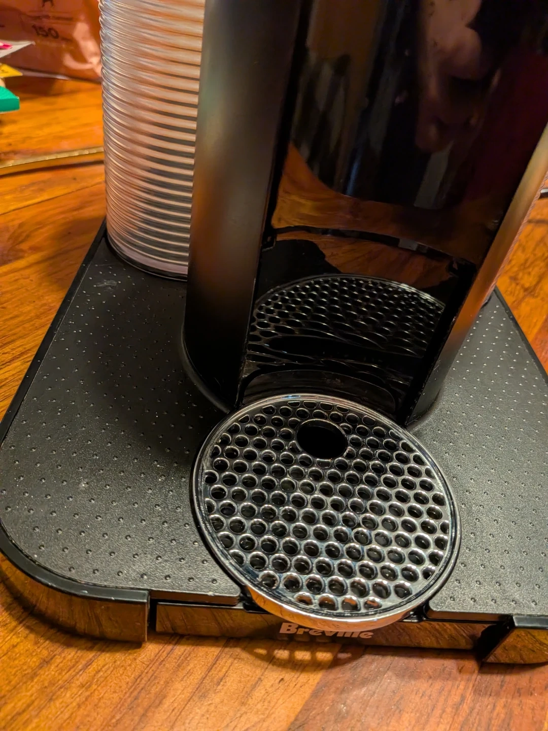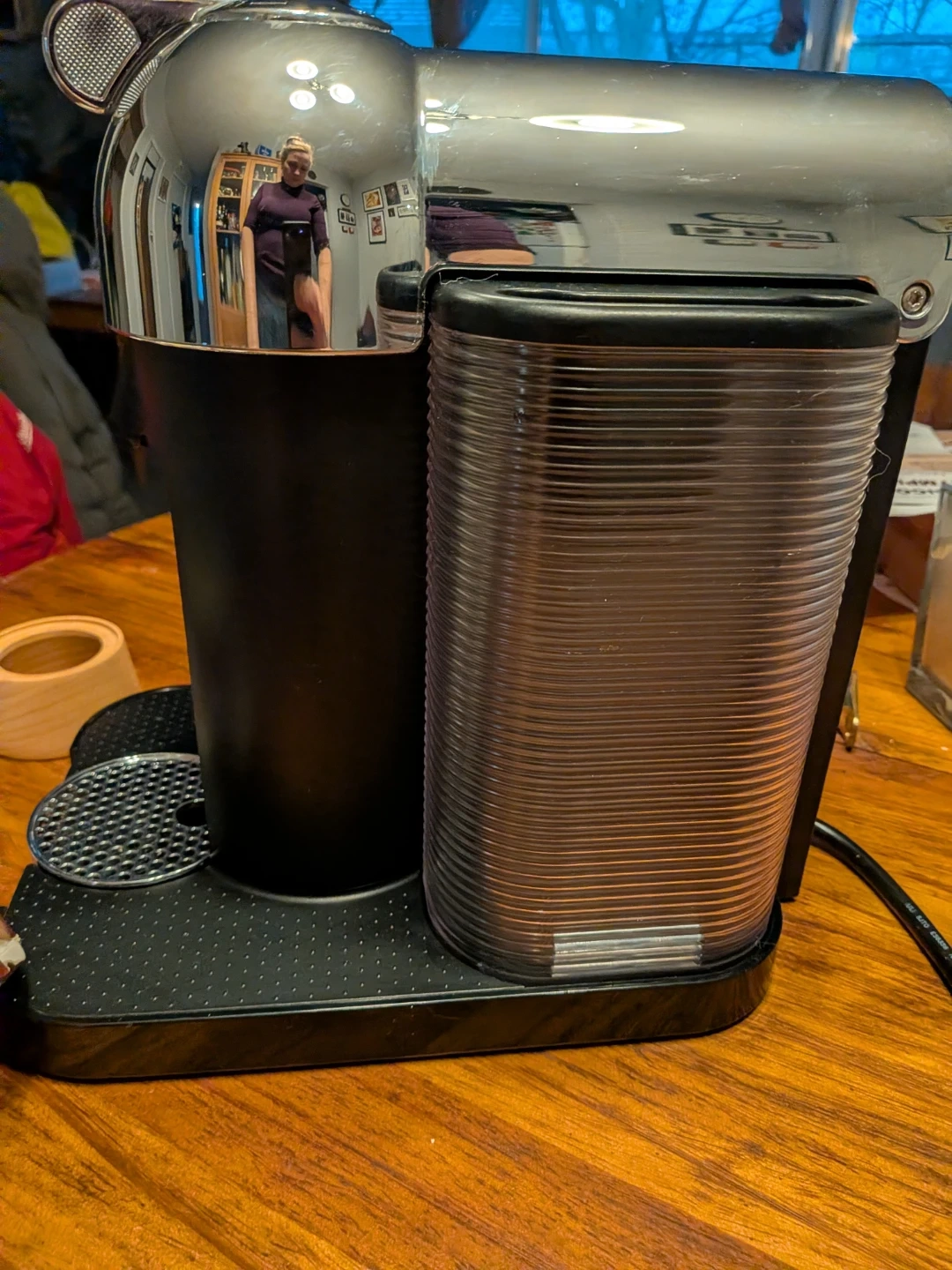 Make delicious coffee and espresso at home with this Nespresso Breville VertuoPlus machine. It brews multiple cup sizes with the touch of a button. Easy to use. Includes a water tank and capsule bin