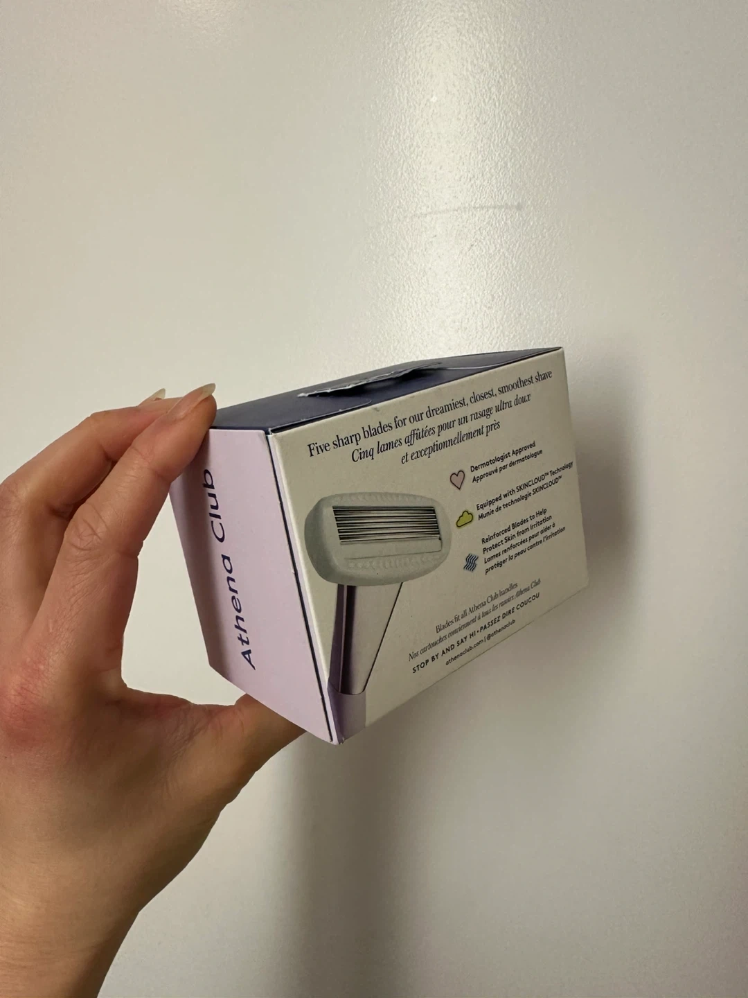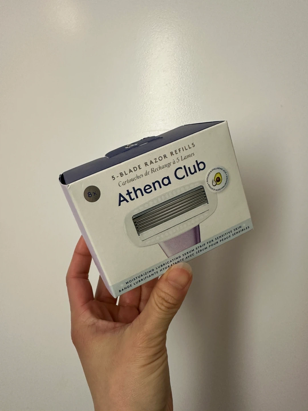 Athena Club 5-blade razor refills. Moisturizing lubricating serum strip for sensitive skin. Dermatologist approved with SENSICOLID technology. Reinforced blade to help protect skin from irritation.