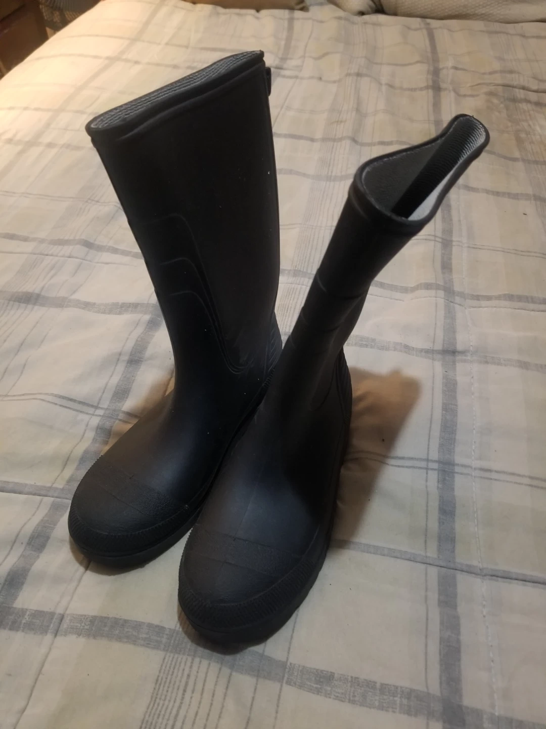 These are black rubber rain boots. They're made in Canada. The soles have a good grip pattern. Size 7. Asking Only $8 Please let me know if Interested