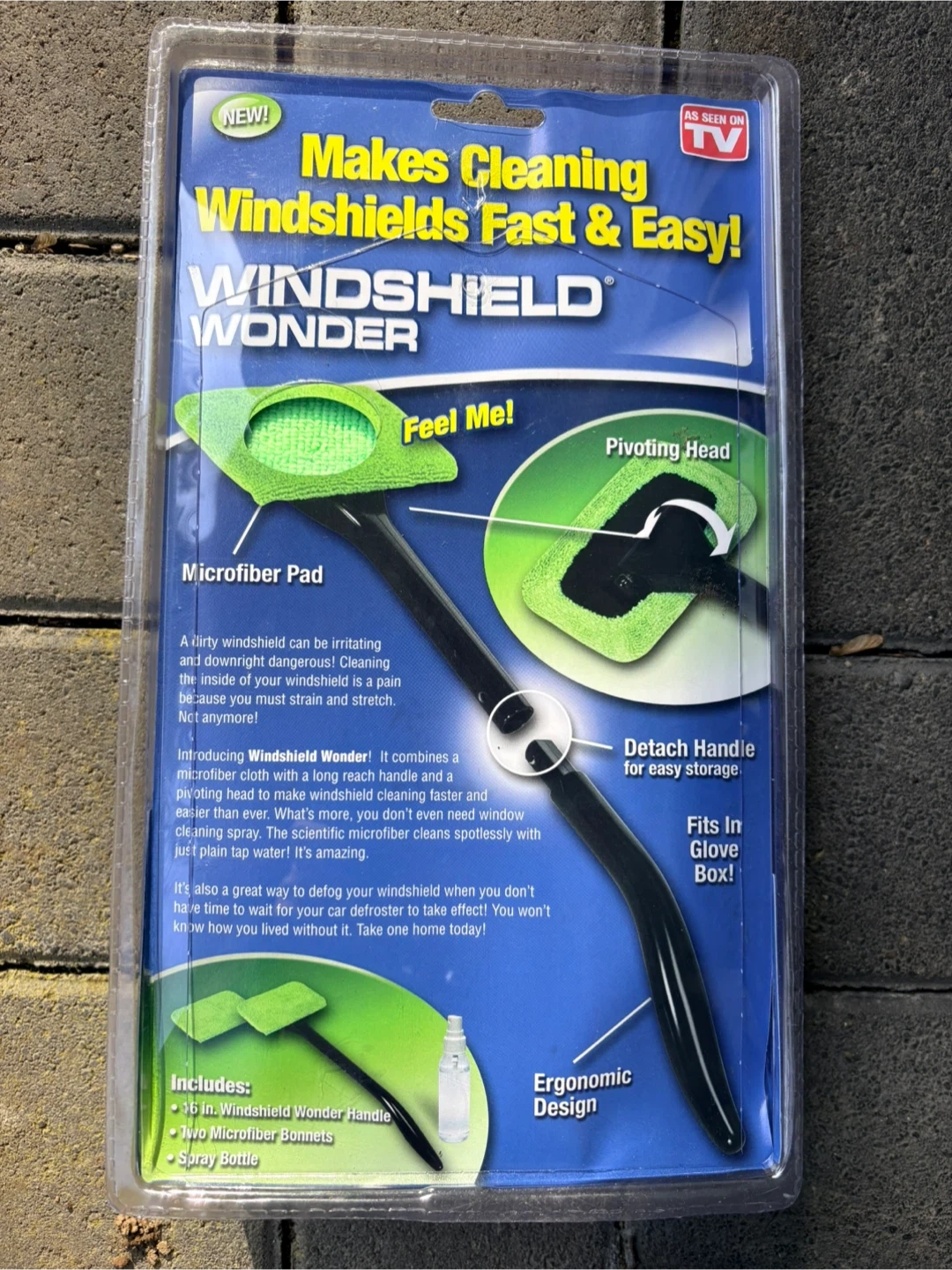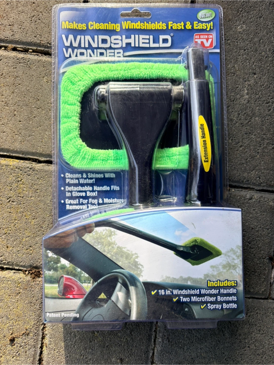 It fits in your glove box and is great for fog and moisture removal. Includes 16 in. windshield wonder handle, two microfiber bonnets, and a spray bottle.