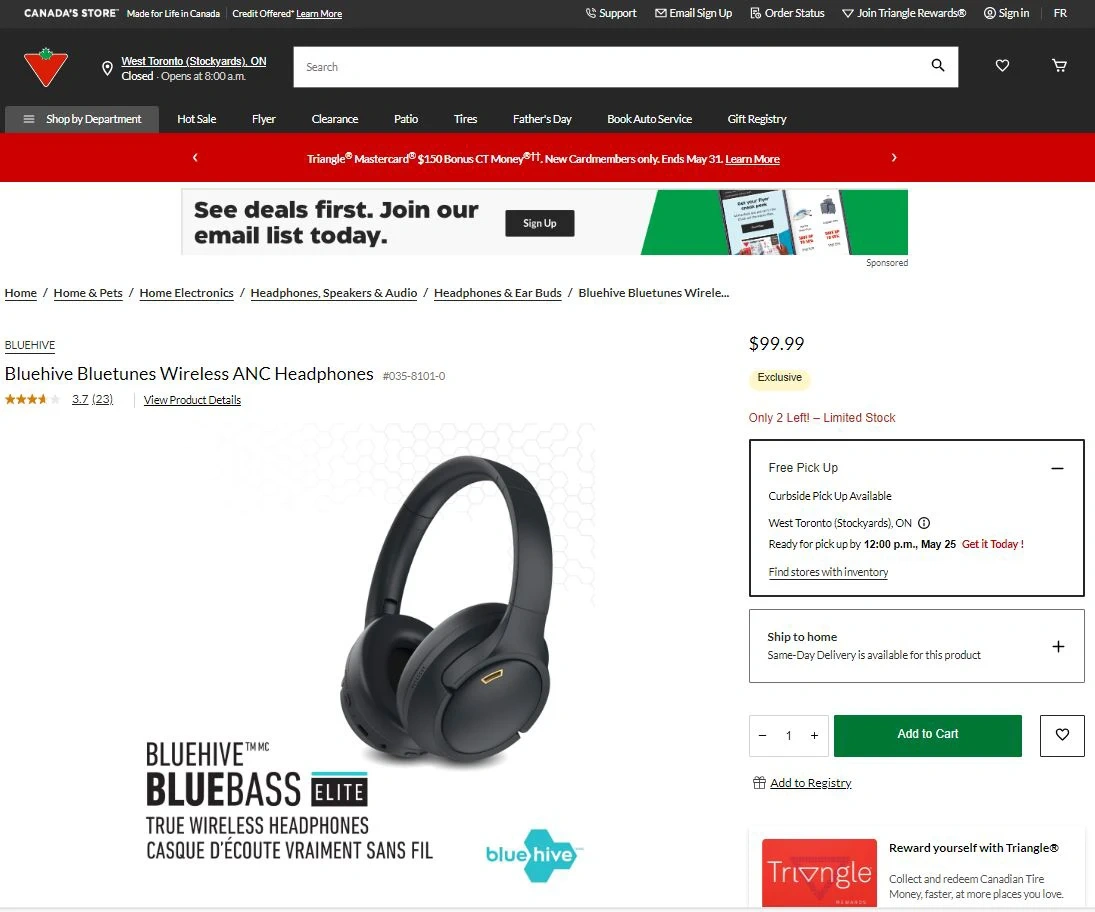 -Retail selling at $99.99 + taxes ($112.99 including taxes)
