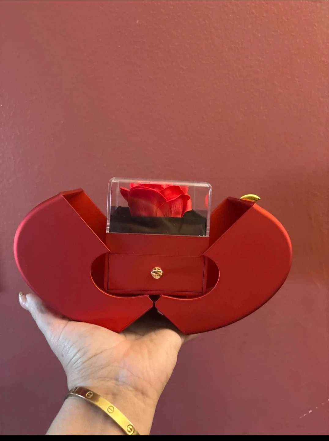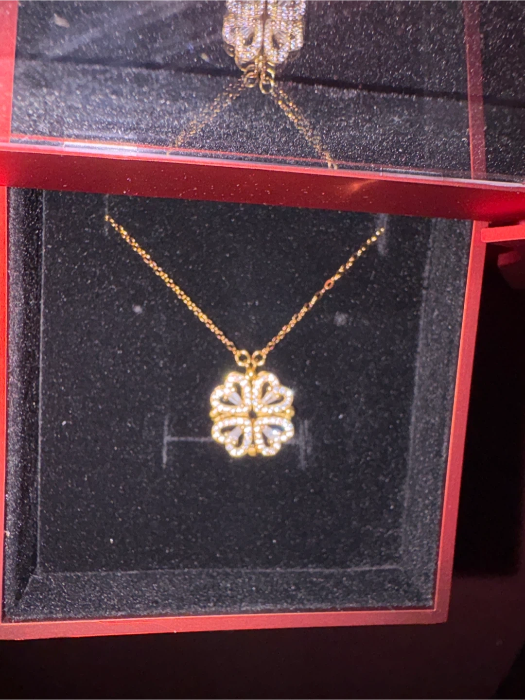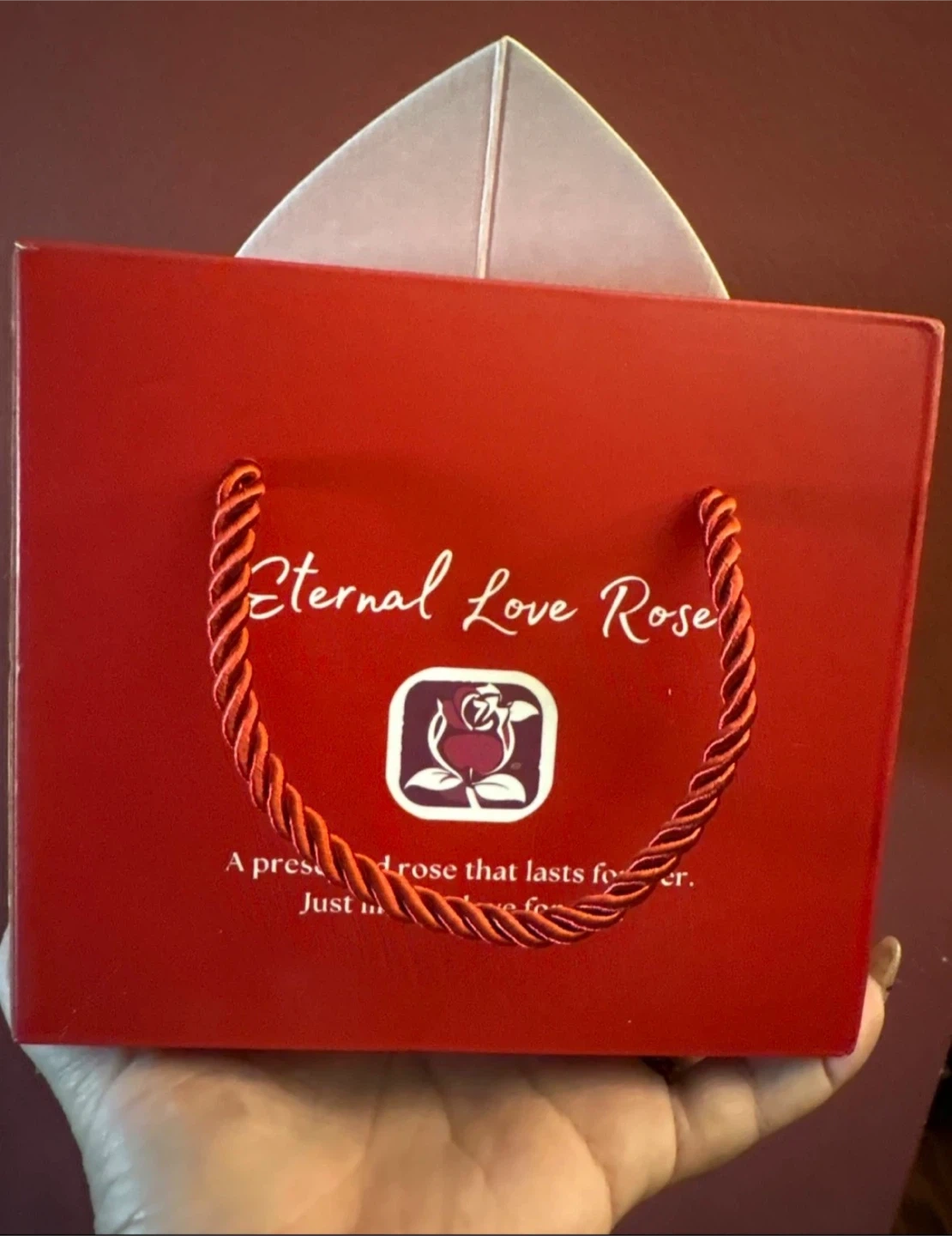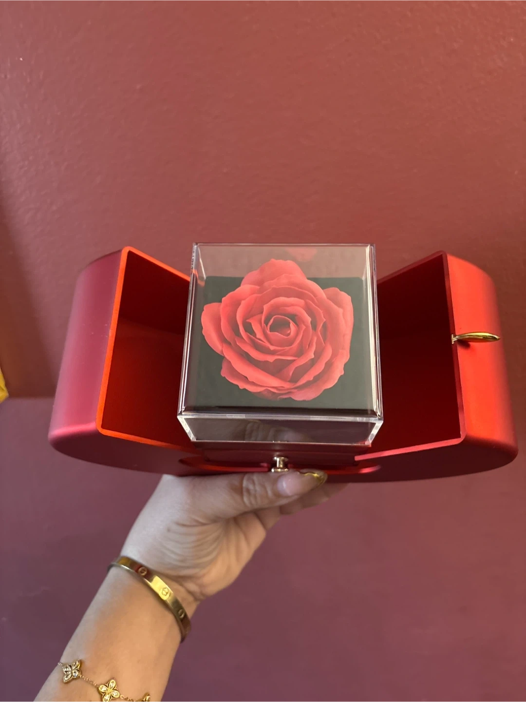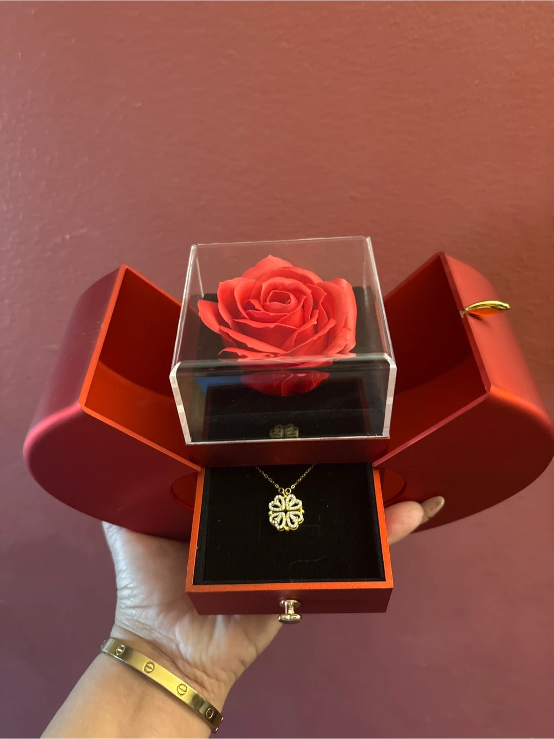 A preserved red rose that lasts forever, presented in a heart-shaped gift box 18k gold 925 Sterling silver CZ Heart Necklace . The box features a small drawer for jewelry or other small items. Perfect for special occasions or as a lasting romantic gesture! New Authentic