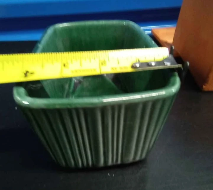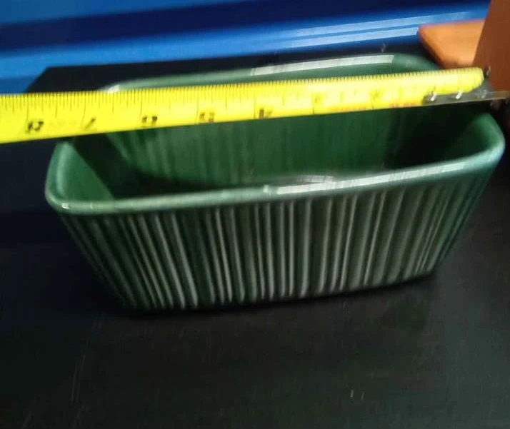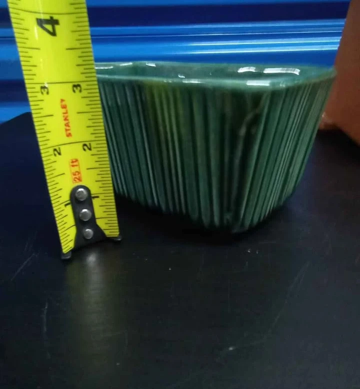 This is a green ceramic ramekin dish by Hull USA.