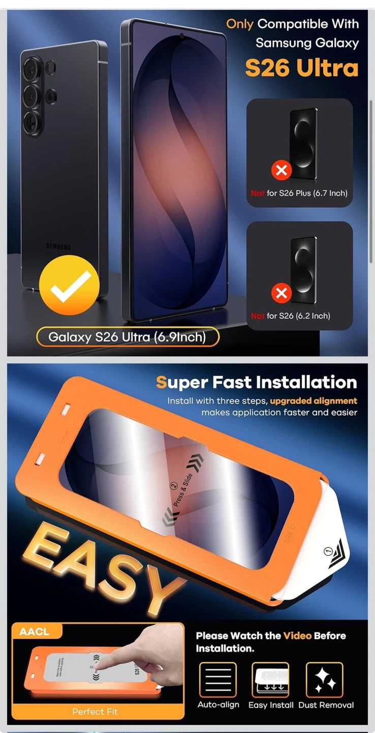 3-Pack for Samsung Galaxy S26 Ultra Screen Protector Tempered Glass, 9H Glass for S26 Ultra Screen Protector 5G, [Fast Alignment Tool] [Bubble Free] [6.9 Inch]