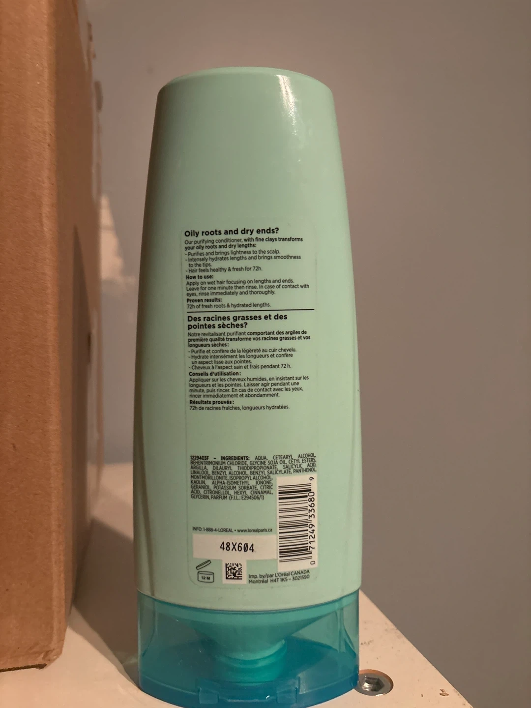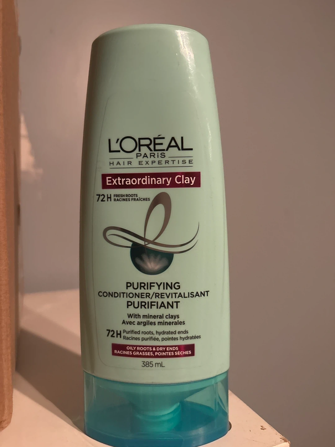 Selling a bottle of L'Oréal Paris Hair Expertise Extraordinary Clay Purifying Conditioner. This conditioner is designed for oily roots and dry ends. It contains mineral clays to purify roots and hydrate lengths, leaving hair feeling healthy and fresh for 72 hours. The bottle contains 385 mL of product