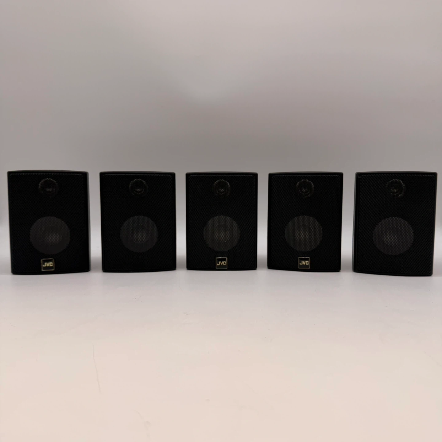 Set of 5 JVC SX6.5-B satellite speakers for home theater surround sound.