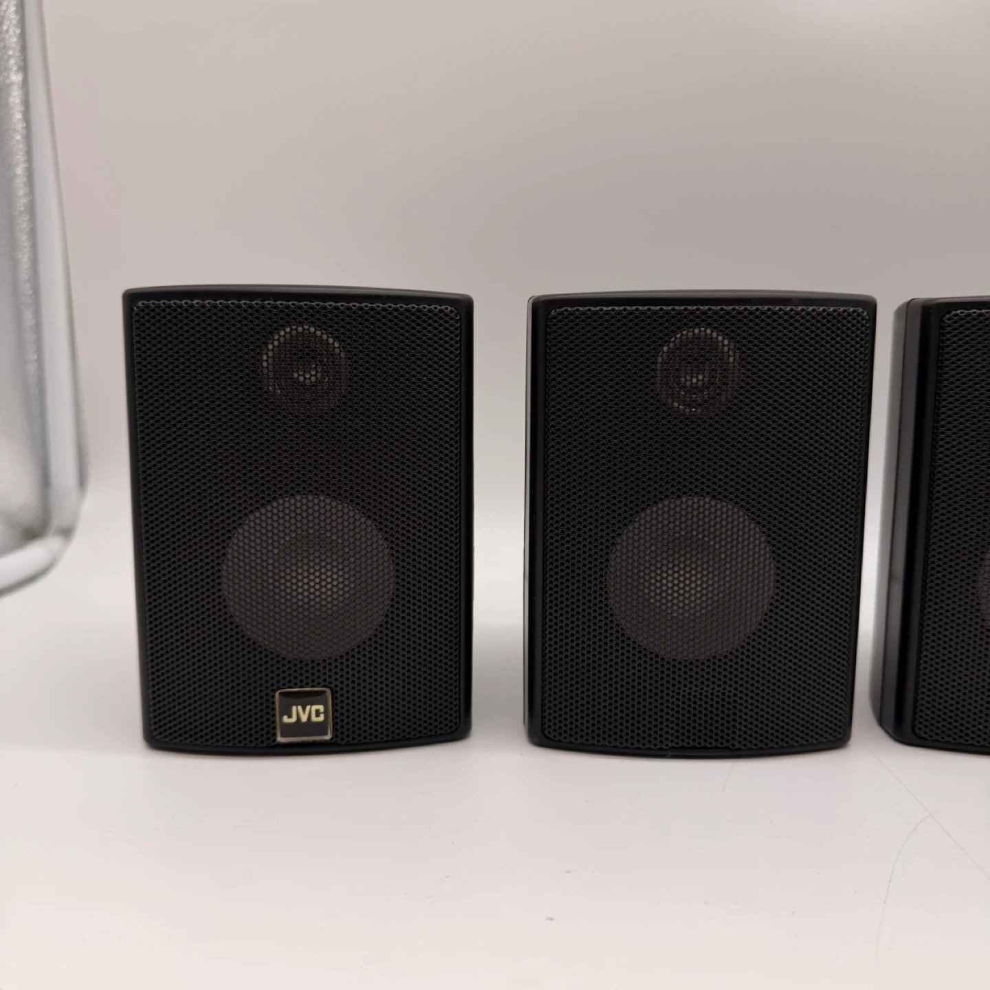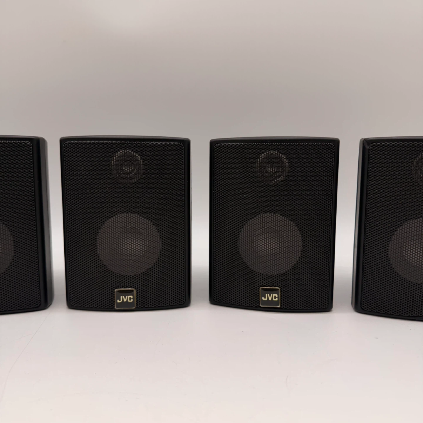 ⚠️ Note: 2 speakers are missing the front JVC logo badge (cosmetic only, no effect on sound).