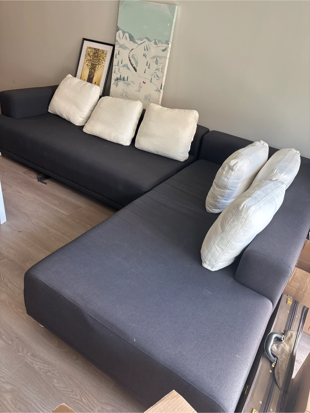Selling a gently used IKEA Kivik sectional sofa in dark grey. It's in great condition and super comfy!