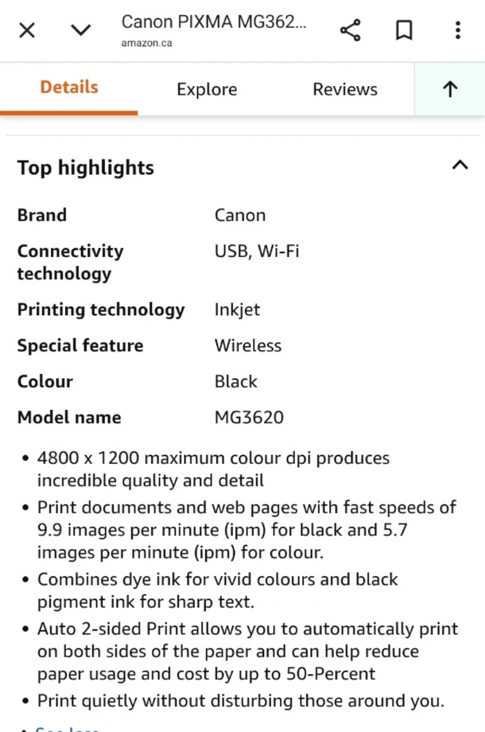 Canon PIXMA MG3620 Printer/Scanner
