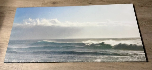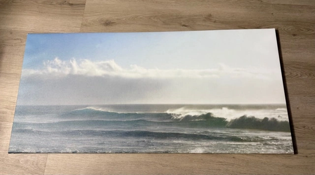 Enhance your space with this captivating canvas print featuring a dynamic ocean wave scene, perfect for adding a touch of coastal serenity to any room. This piece is in used, but good condition. 47” x 22.5”. Feel free to message if you have any questions!