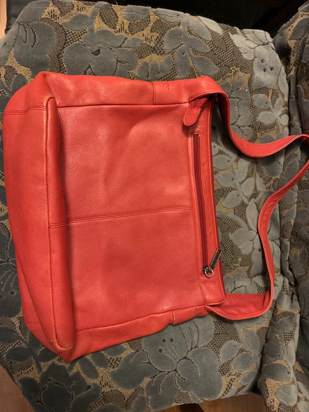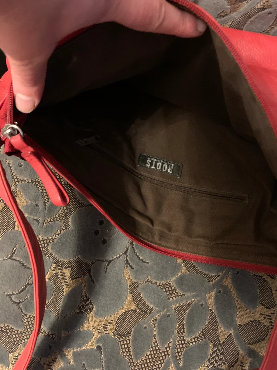 This is a Roots red leather shoulder bag. It's made from genuine leather. It has an interior zip pocket for your essentials. It's great for everyday use!