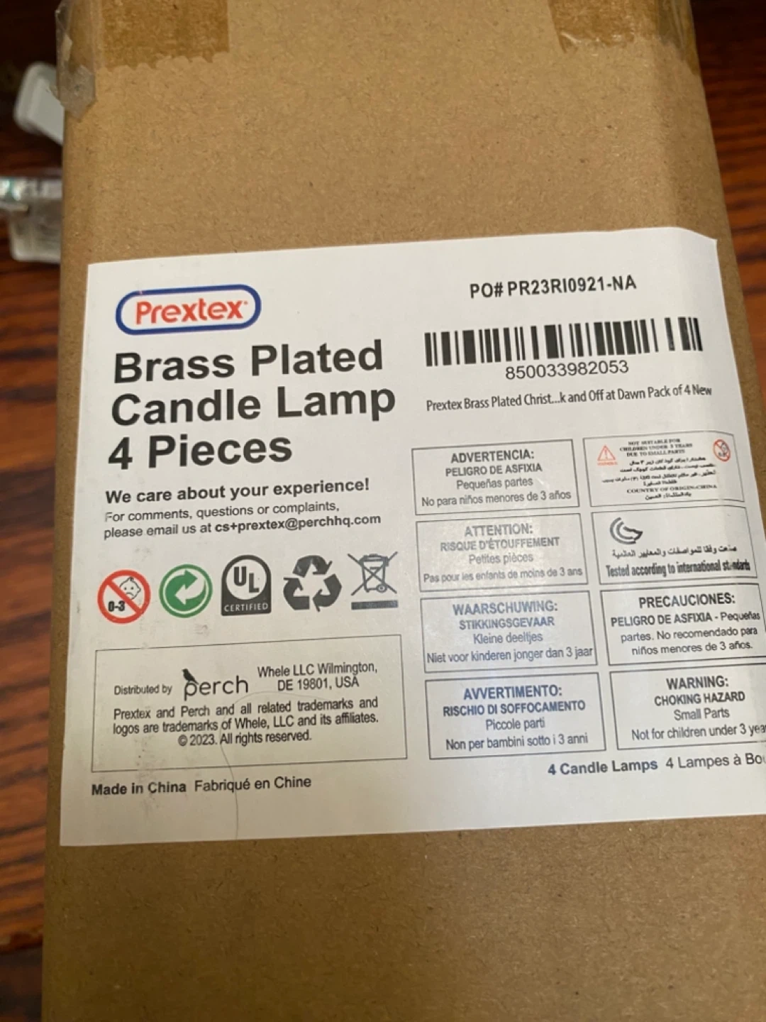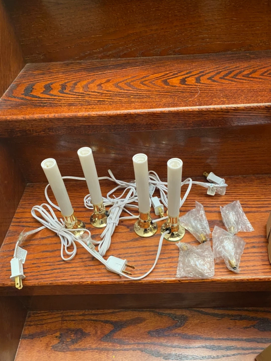 This is a set of 4 Prextex brass plated candle lamps. They're perfect for adding a festive glow to your home during the holidays. The lamps are made of brass plated material.