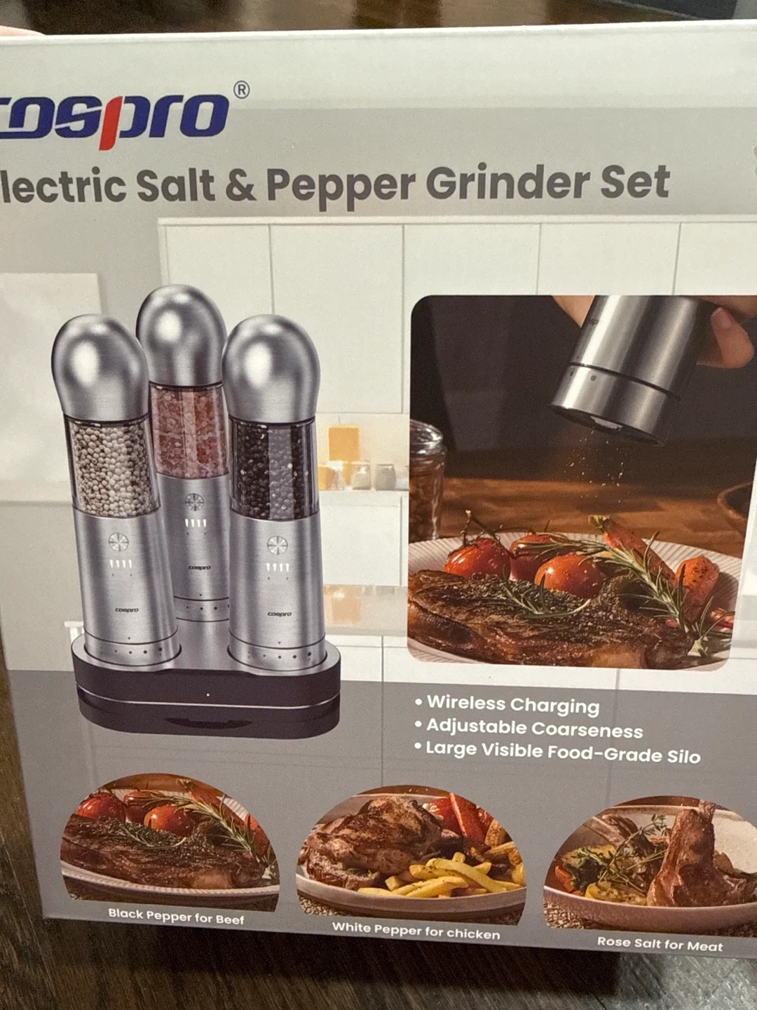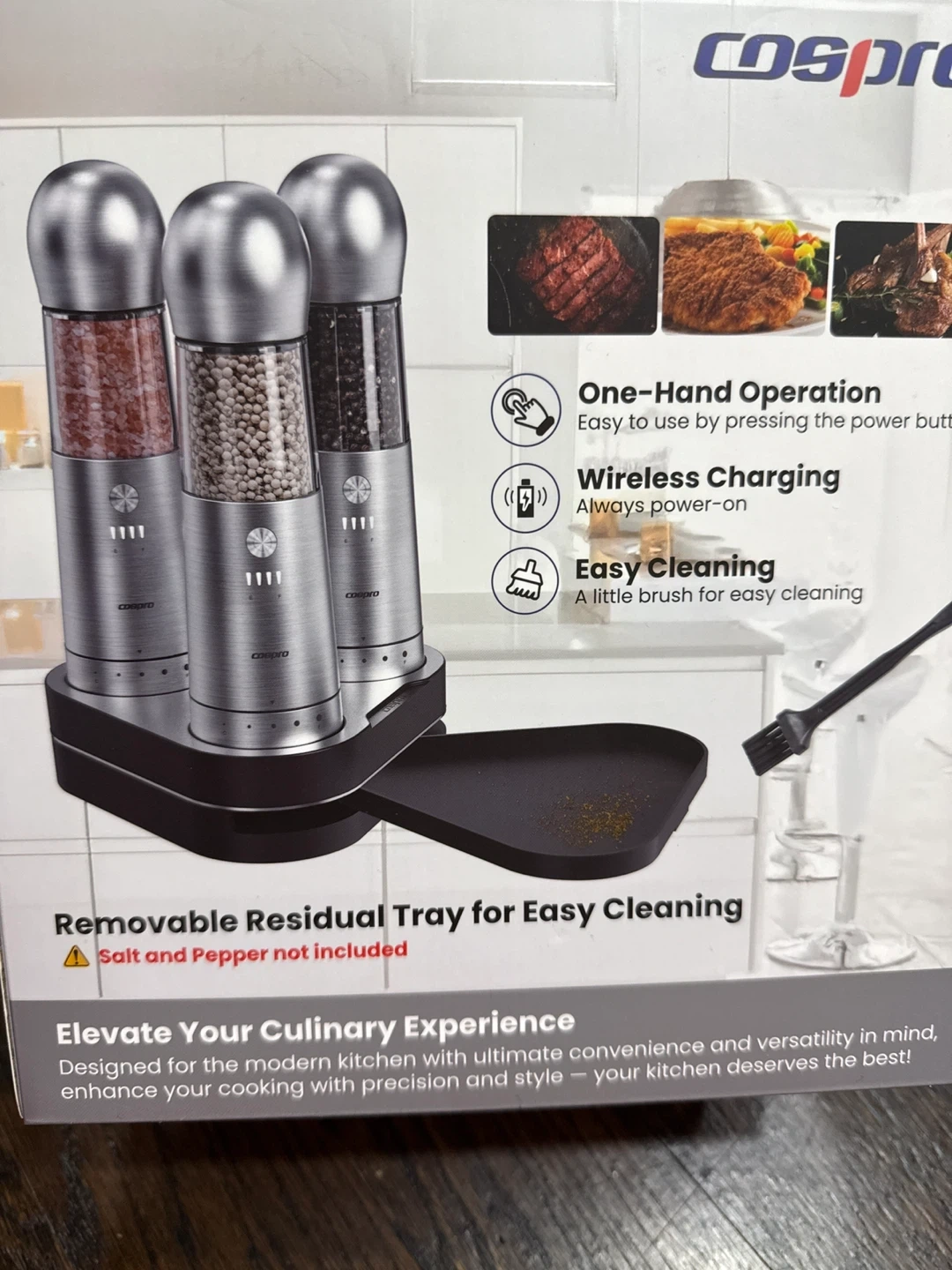 Cospro Electric Salt & Pepper Grinder Set - Wireless Charging