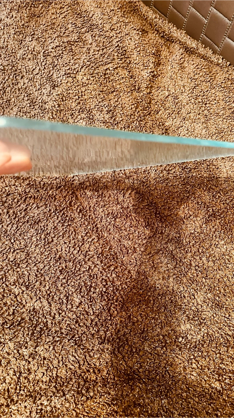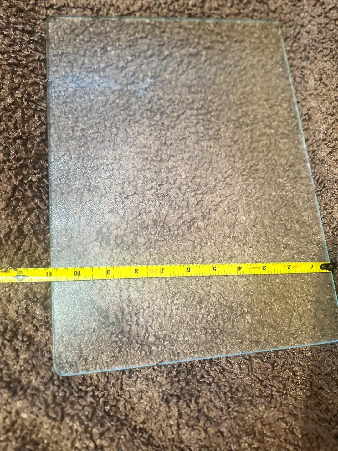 Selling a glass cutting board that measures approximately 14 inches by 11 inches. It's in good condition and ready to use .