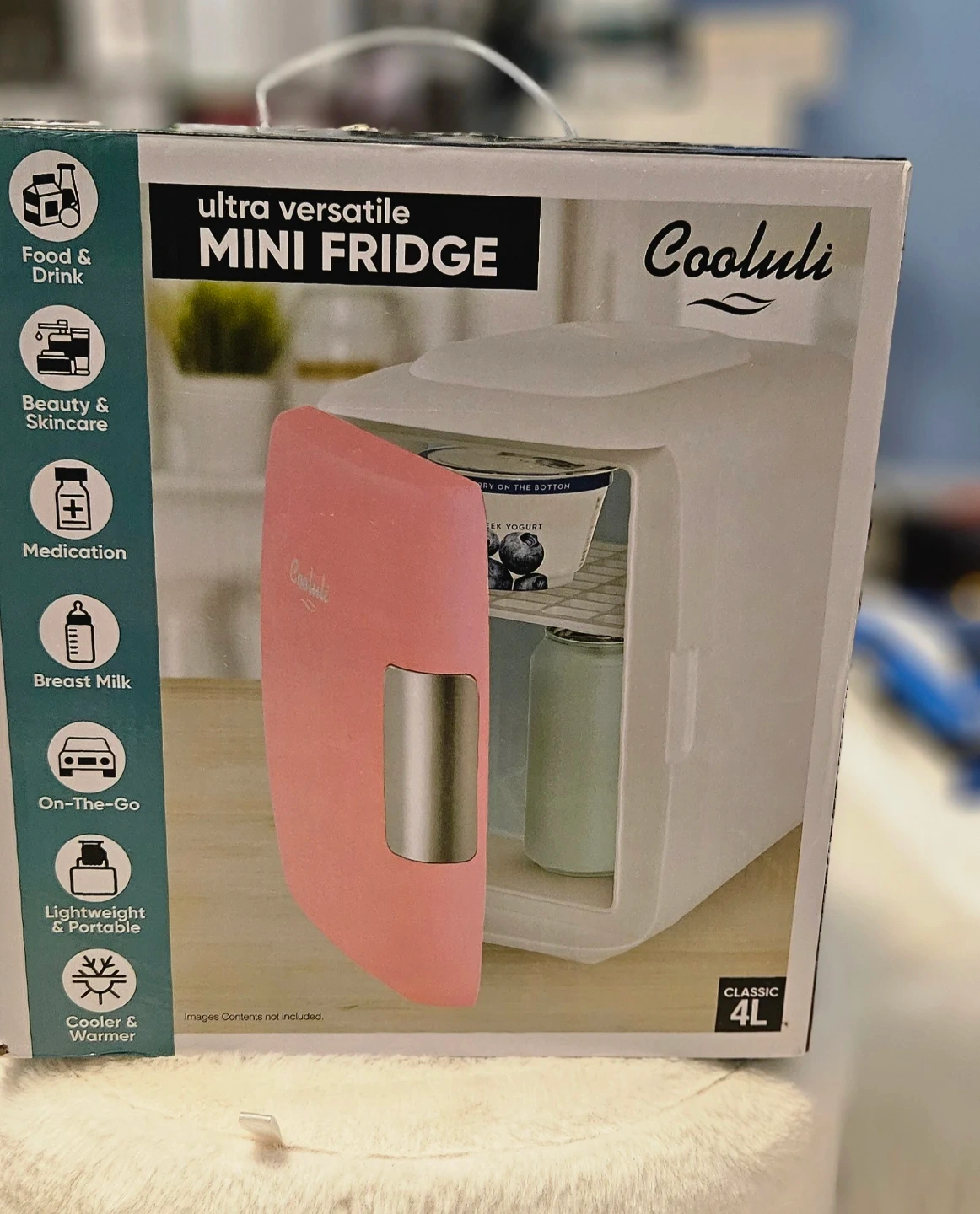 This is an ultra versatile mini fridge from Cooluli. It's a 4L capacity cooler and warmer. This lightweight and portable unit is great for on-the-go use.