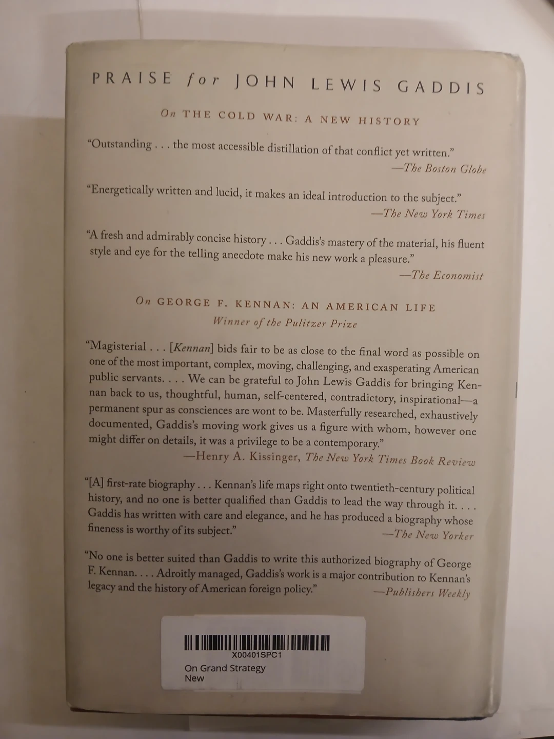 This is the book "On Grand Strategy" by John Lewis Gaddis. It explores the concept of grand strategy and has won the Pulitzer Prize. It offers insights into historical strategy and leadership.