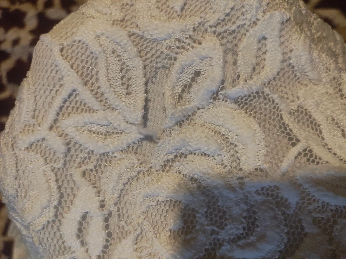 The blouse is white lacy has lining. I do see a little space in-between one lace(see photo) but I don't think it's noticeable.